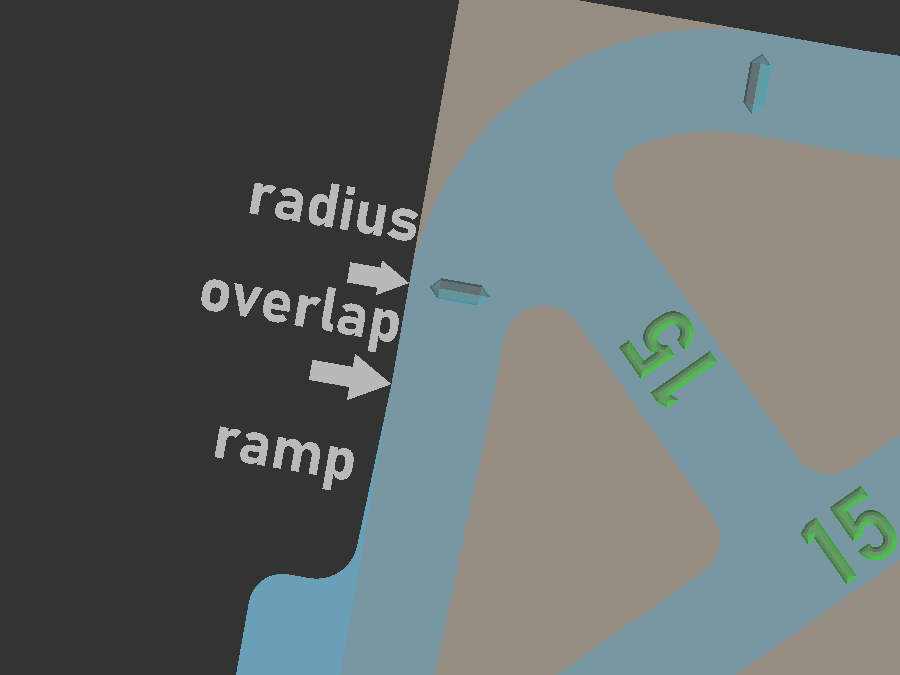 Hướng dẫn góc cho bộ định tuyến có đường dốc trong/ra cho bán kính 5-50mm và trung tâm bán kính/bắt đầu các dấu