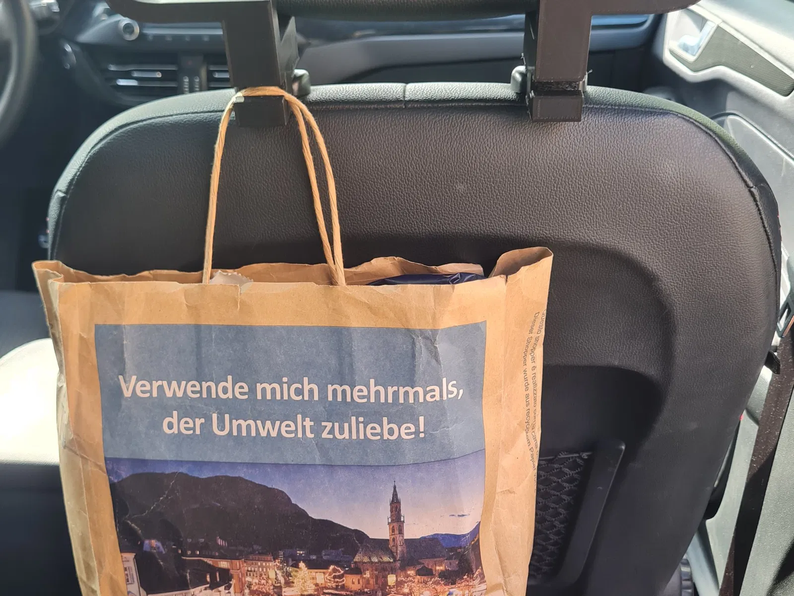 Tôi đã tạo ra mẫu này để có một móc treo tích hợp trong xe và không cần phải mang từ nhà nữa! Tôi cũng đã thêm hai móc để giữ hai túi phòng trường hợp cần thiết. 👔🛍