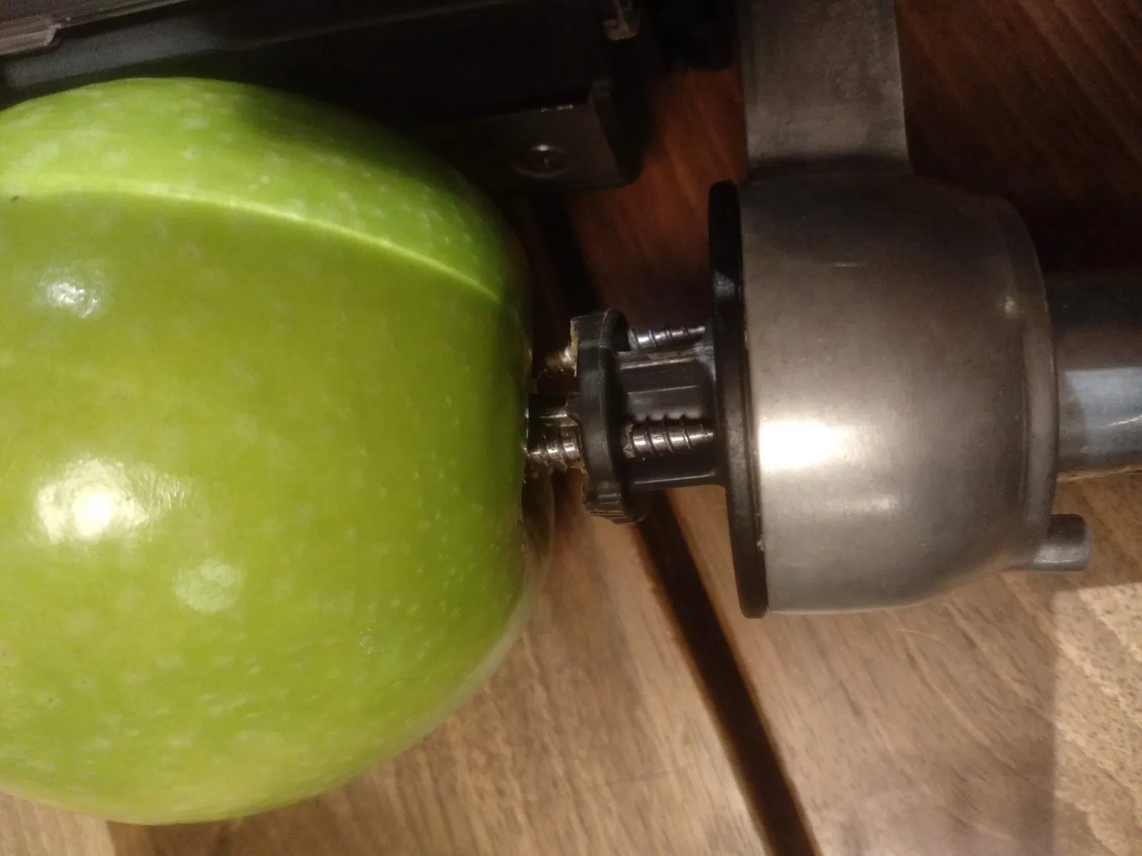 Đây là phần trong số các phần được bao gồm trong máy xoắn rau của thiết bị nhà bếp Kitchen Aid. Phần cụ thể này là phần được sử dụng để gắn và cố định trái cây (táo trong trường hợp của tôi).