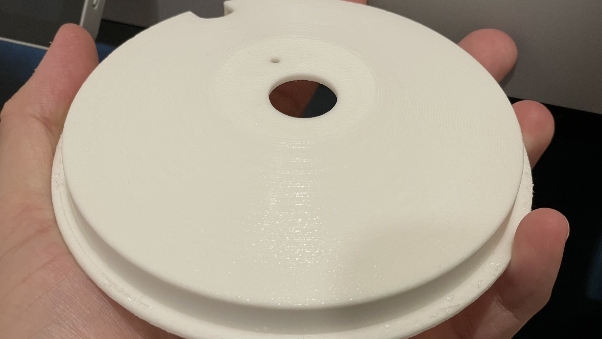 Vợ tôi đã mua một Bio Orb Halo và vì lý do nào đó, các nhà sản xuất chắc chắn nghĩ rằng bạn sẽ không cần đến một bộ gia nhiệt hoặc nhiệt kế vì họ đã không dành chỗ cho dây điện. Vì vậy, tôi đã tái tạo lại nắp trong một kiểu dáng gần giống và tạo ra một lỗ cắt để cho phép dây điện đi qua. Tôi vẫn phải tìm ra một giải pháp cho nắp có bản lề… nhưng phải bắt đầu từ đâu đó.