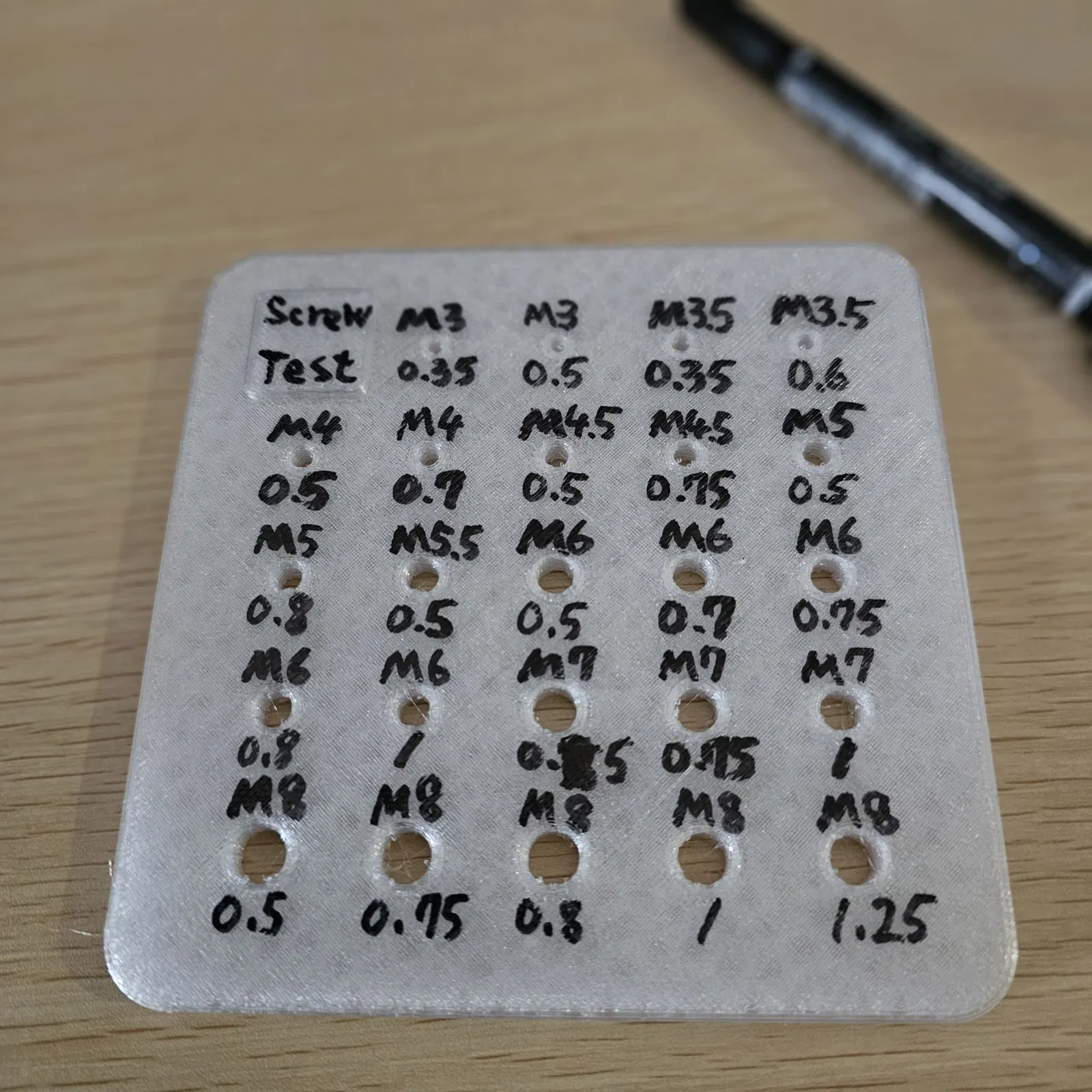 Tôi đã thực hiện điều này để kiểm tra kích thước lỗ nào là tốt nhất để sửa ốc vít mà không bị nứt bản in.