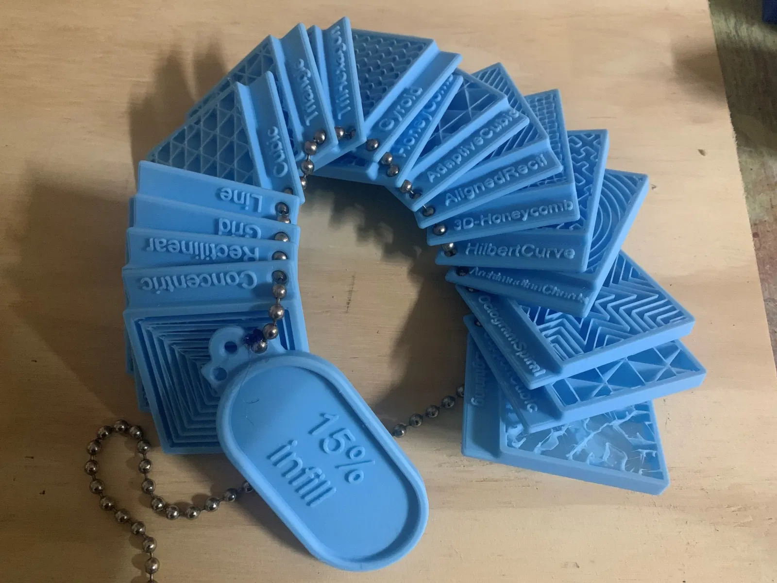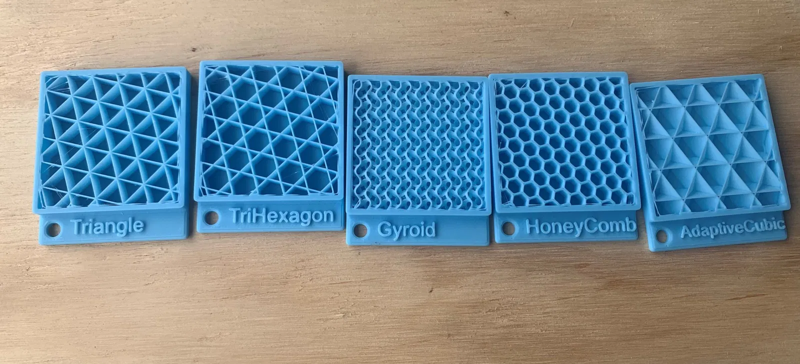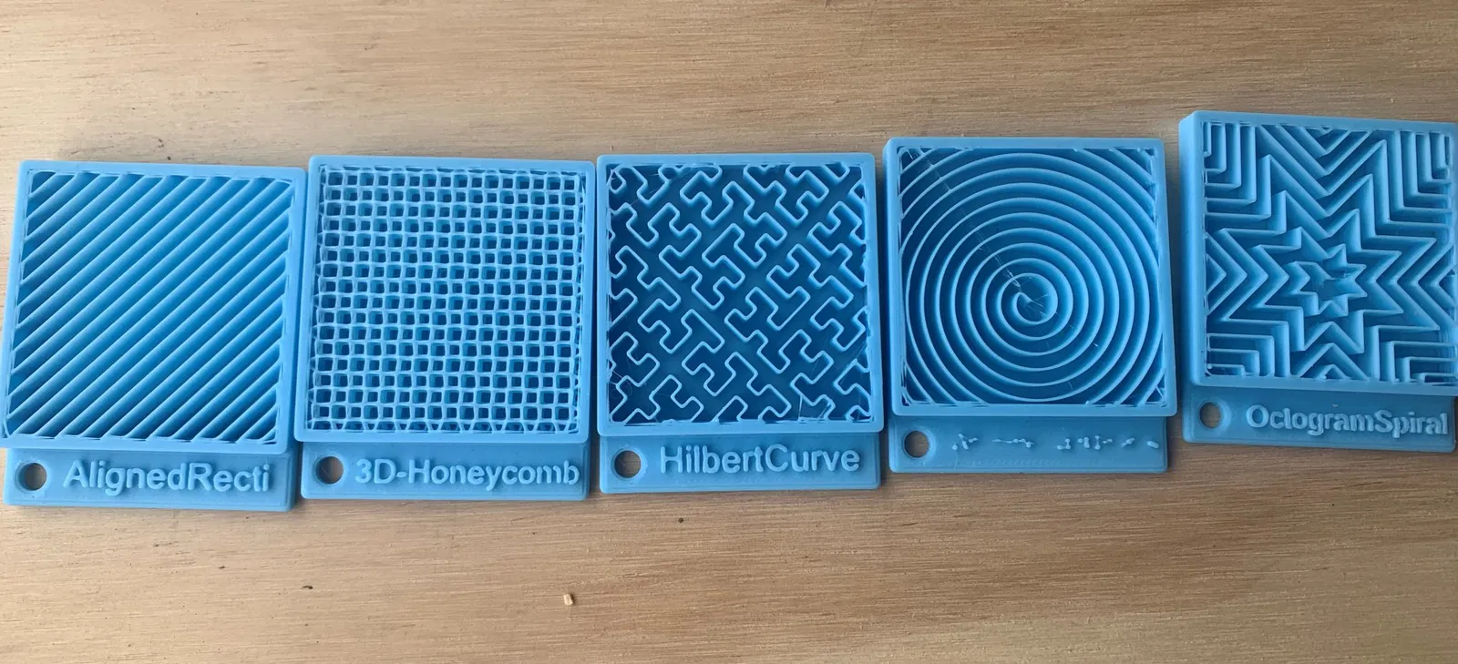 Tôi muốn in các mẫu của các loại infill có sẵn trong Bambu studio để trình bày cho các khách hàng tiềm năng. Tôi đã in bằng PLA với 4 lớp vỏ (có thể là hơi thừa). Sử dụng infill phù hợp theo tên trong tệp. Tôi đã sử dụng 15% độ đầy. Trong Bambu studio, tôi đã tạm dừng ở khoảng dấu 7 mm, sau đó khi bản in tạm dừng, tôi đã dừng bản in. Vì vậy, không có lớp trên cùng.