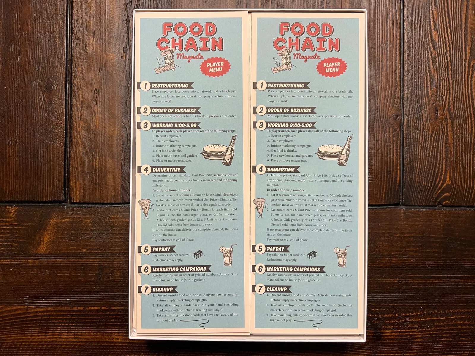 Food Chain Magnate có một chiếc hộp rất chật, đặc biệt là khi cố gắng đặt các thẻ có bọc bài cao cấp cùng với các tính năng khác ở trên. Vì lý do này, và vì tôi sử dụng Iron Clays hoặc chip poker để đựng tiền trong trò chơi này, bộ chèn này không đựng tiền giấy Food Chain Magnate hoặc bất kỳ vật thay thế tiền nào khác trong hộp.