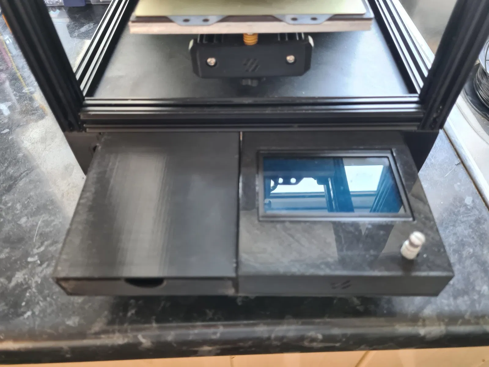 Đây là một giá đỡ màn hình để gắn một màn hình lcd kiểu Creality dự phòng vào Voron 0. 1 của tôi. Đây là một nâng cấp đơn giản và đẹp mắt giúp máy in dễ sử dụng hơn và giá cả phải chăng. Cũng có không gian bên trái của giá đỡ cho một ngăn kéo có thể tìm thấy ở đây: