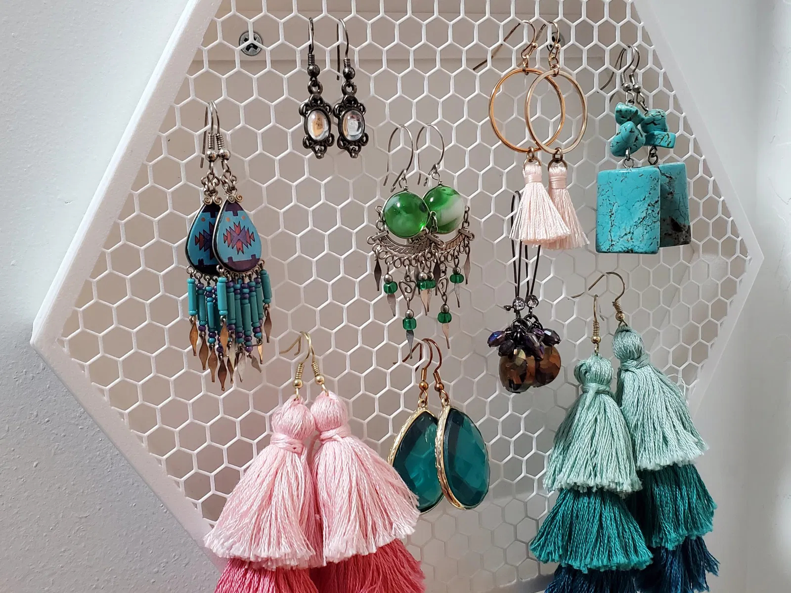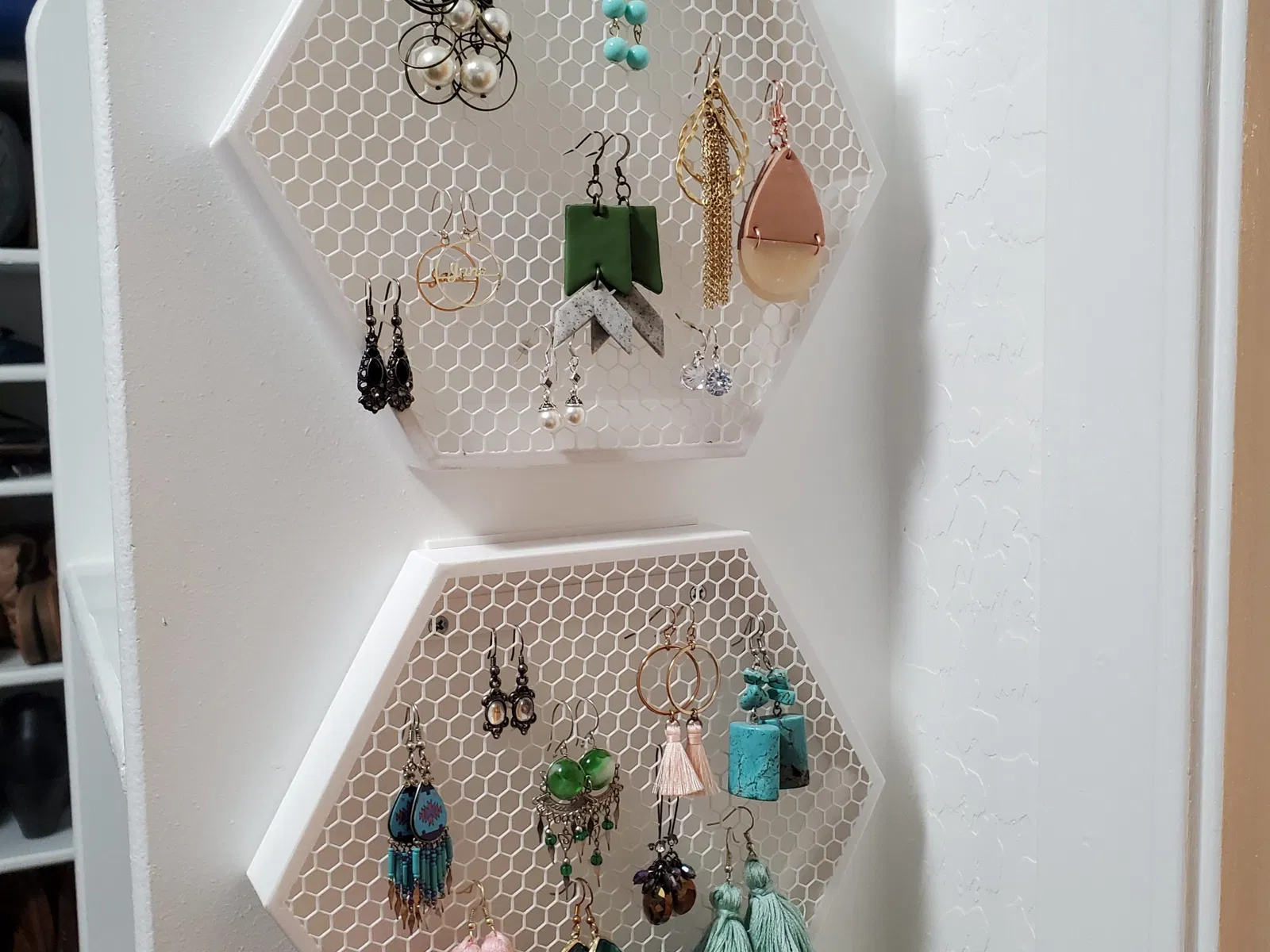 Người giữ bông tai được phối lại từ @pippa - cái này bao gồm gắn tường. Cuối cùng tôi cũng đã tạo ra hình lục giác của riêng mình.