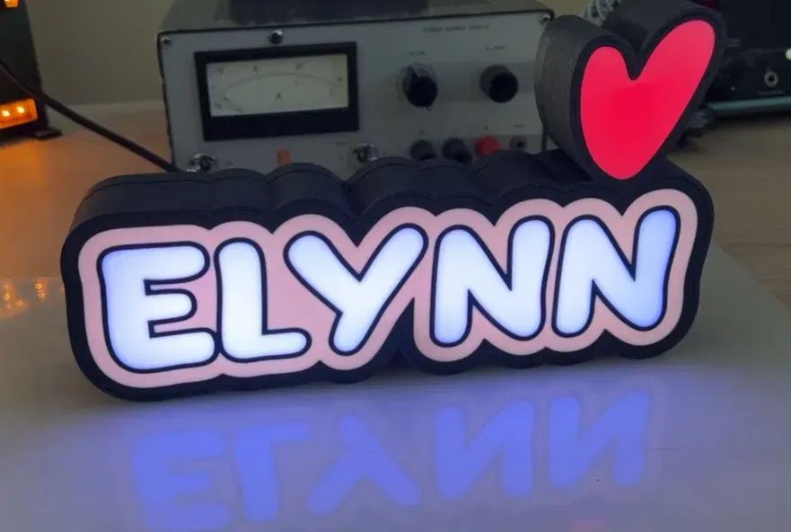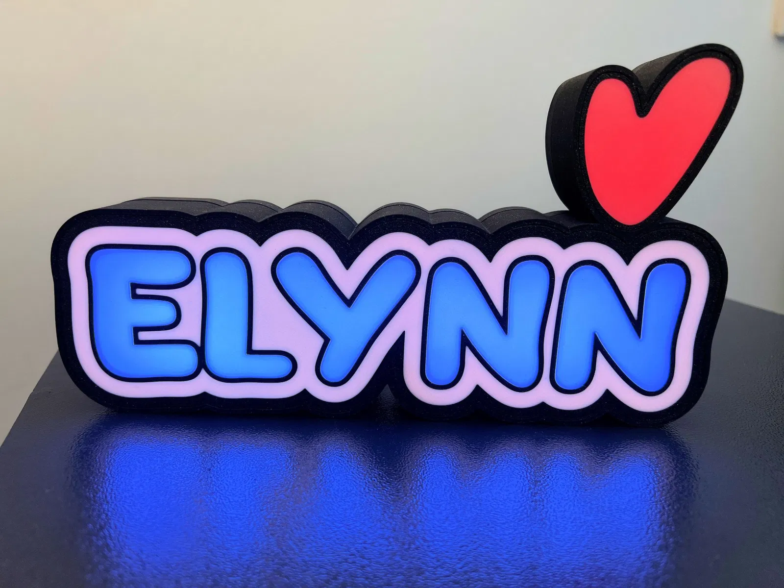Hộp tên Wled Elynn với trái tim đa màu sắc