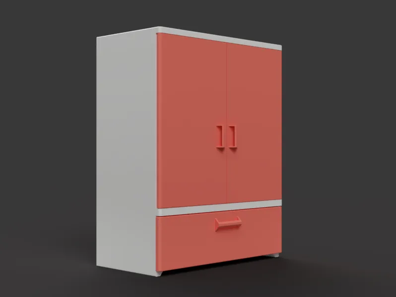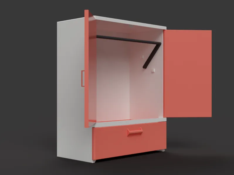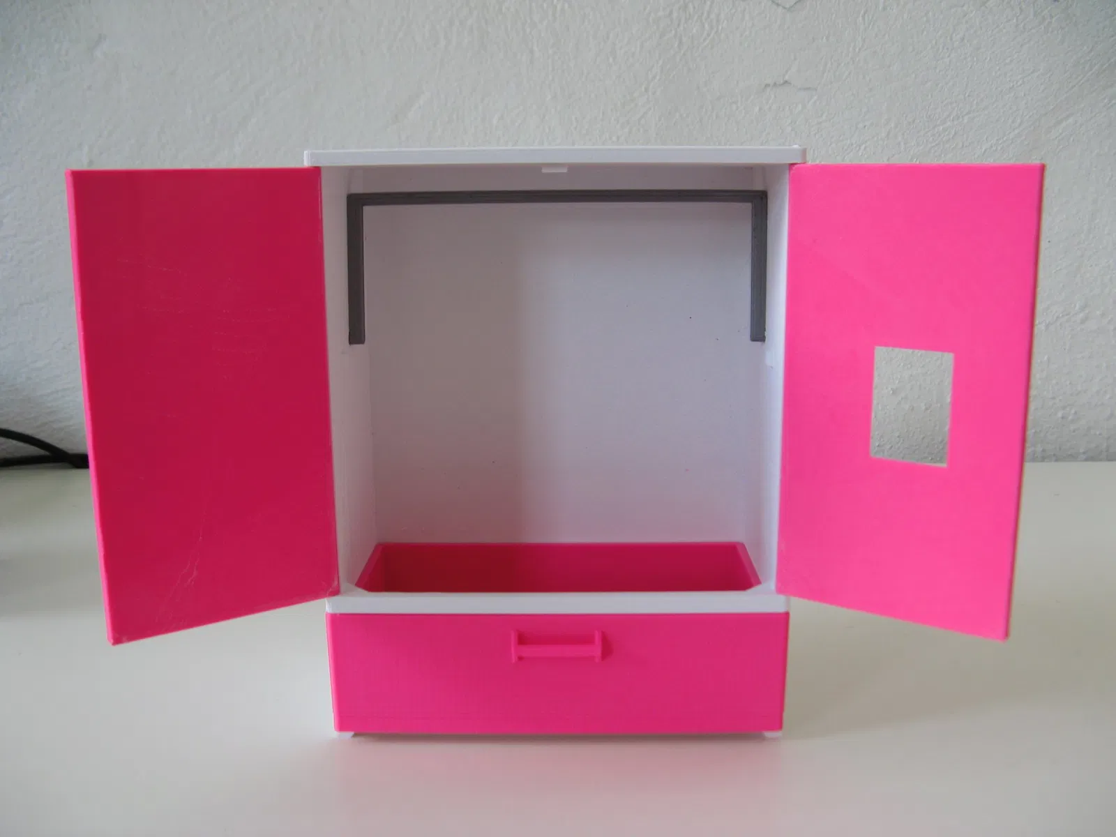 Đây là một tủ quần áo hiện đại cho búp bê. Sử dụng các mảnh của 1,75 dây tóc cho bản lề.