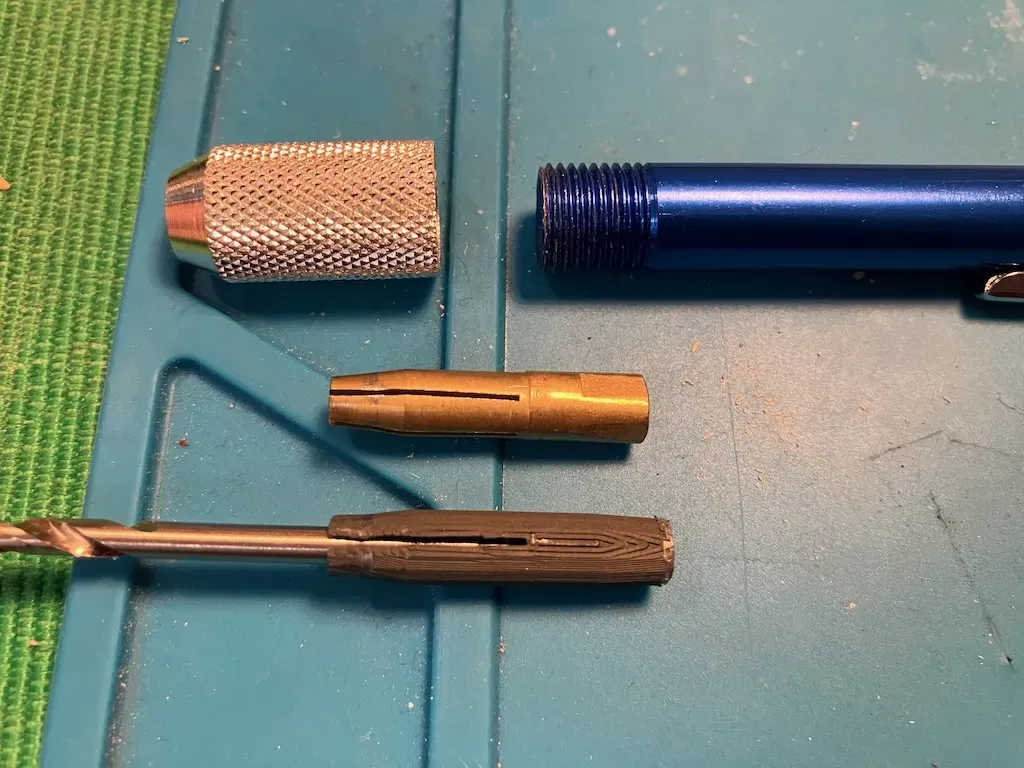 Mâm cặp đi kèm với kẹp đinh của tôi chỉ phù hợp với các mũi khoan rất nhỏ. Tôi muốn một cái phù hợp với mũi khoan 3mm lớn hơn mà tôi thường sử dụng để làm sạch các bản in.