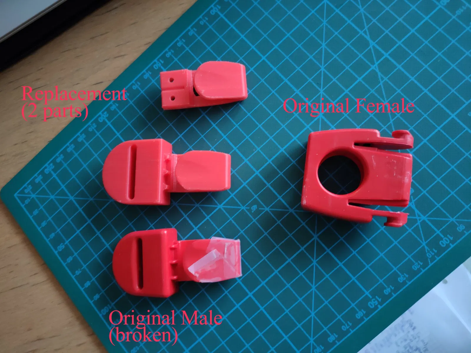 Một người bạn của tôi đã nhờ tôi thay thế móc nam của dây an toàn xe đạp cho con gái của anh ấy.