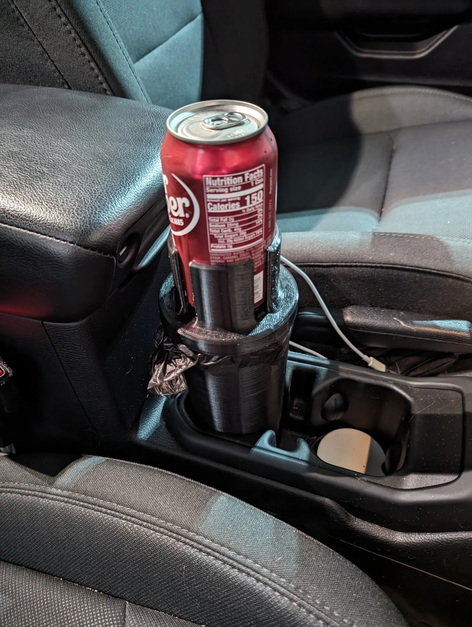 Một thùng rác để ly có thể được sử dụng với hoặc không có nắp đậy cho ly. Nó được thiết kế để vừa khít trong khay đựng ly của Jeep Gladiator.