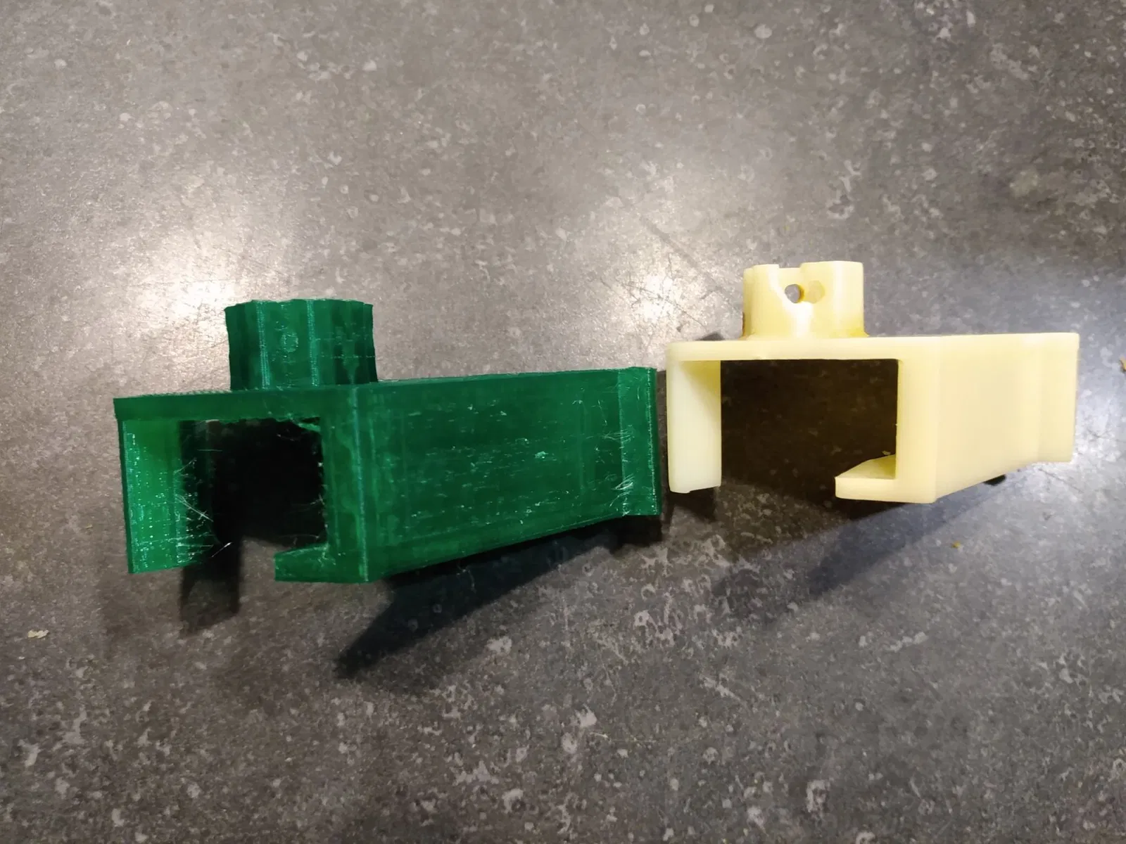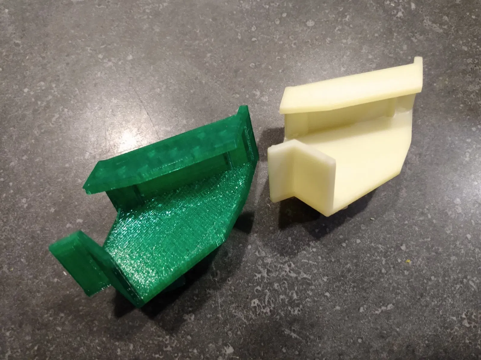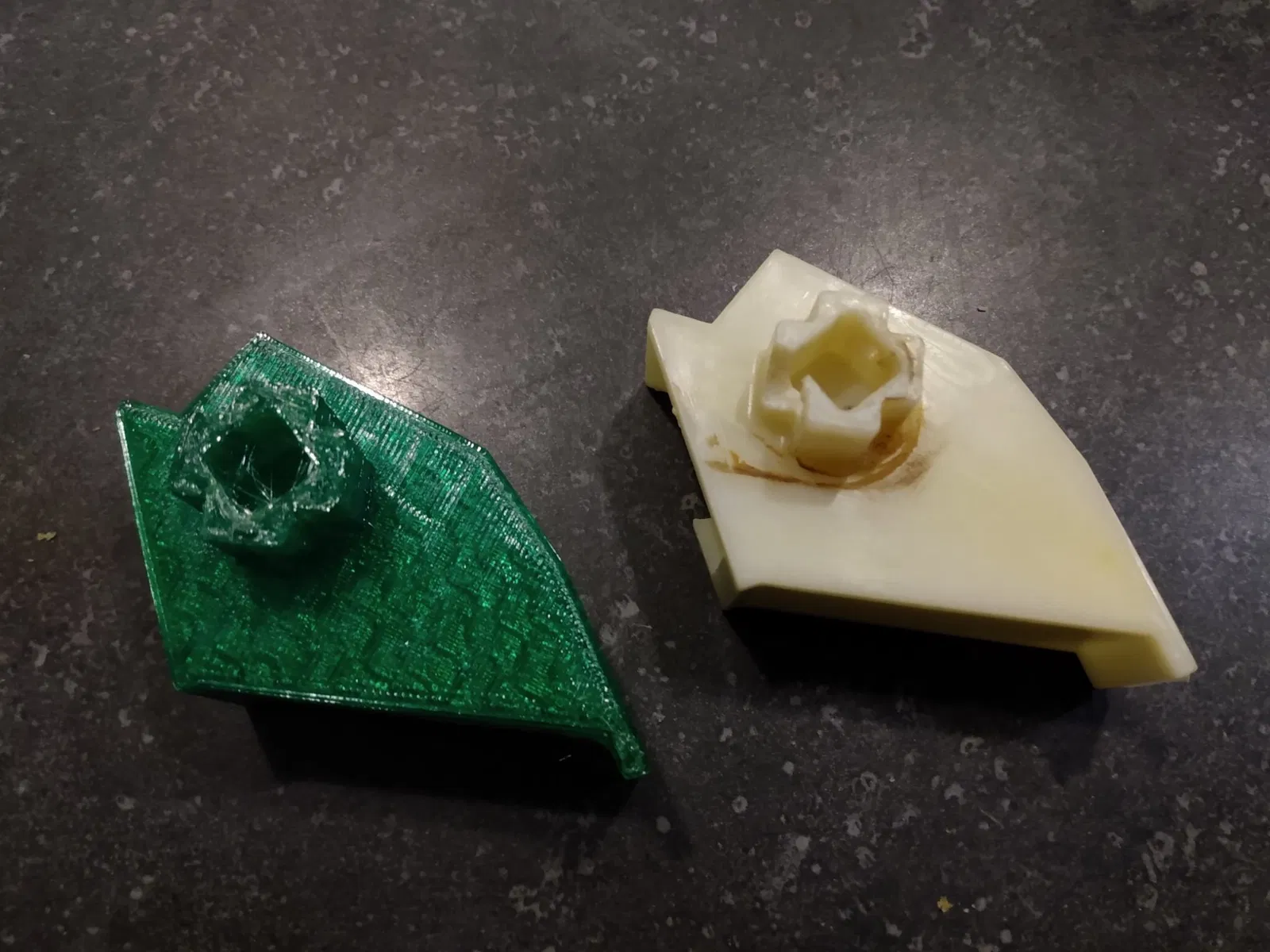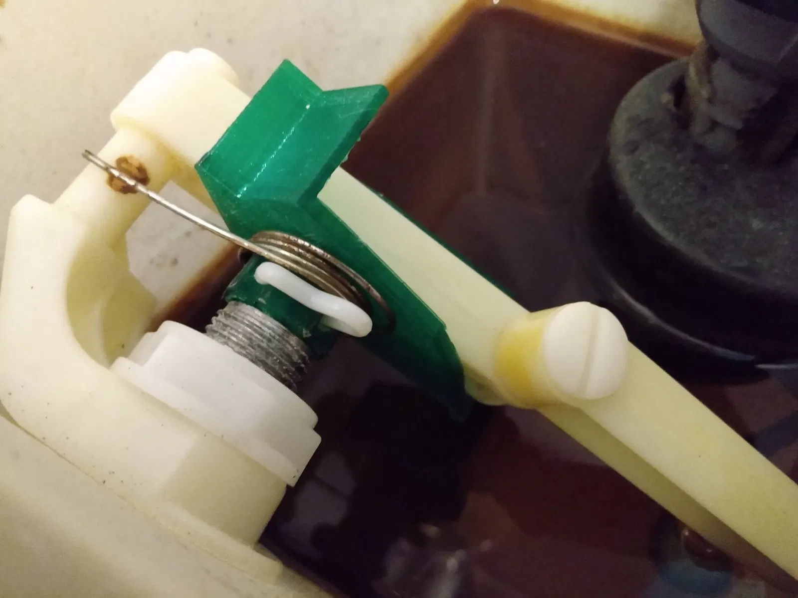 Thay vì bỏ toàn bộ bộ xả, tôi đã quyết định mô hình hóa một bộ phận thay thế và in 3D nó từ PET tái chế chắc chắn từ một chai Mountain Dew 2L.