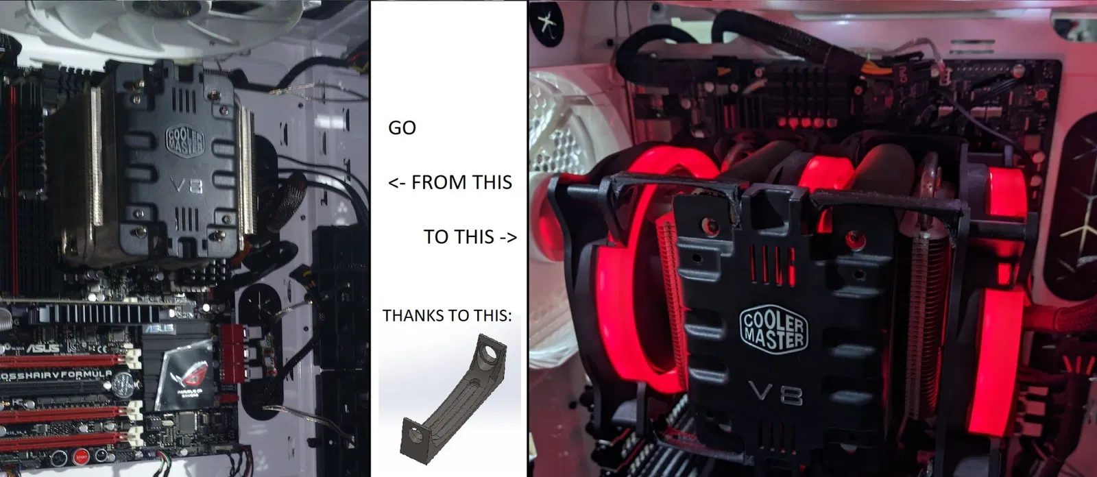 Tôi đã mua một bộ 3 quạt 120mm với giá khoảng 14 USD, thiết kế một bộ mở rộng, in 8 mảnh, và cuối cùng lắp ghép tất cả lại với nhau, tôi đã có nhiệt độ khi render dưới 44 độ C, thật tuyệt vời!