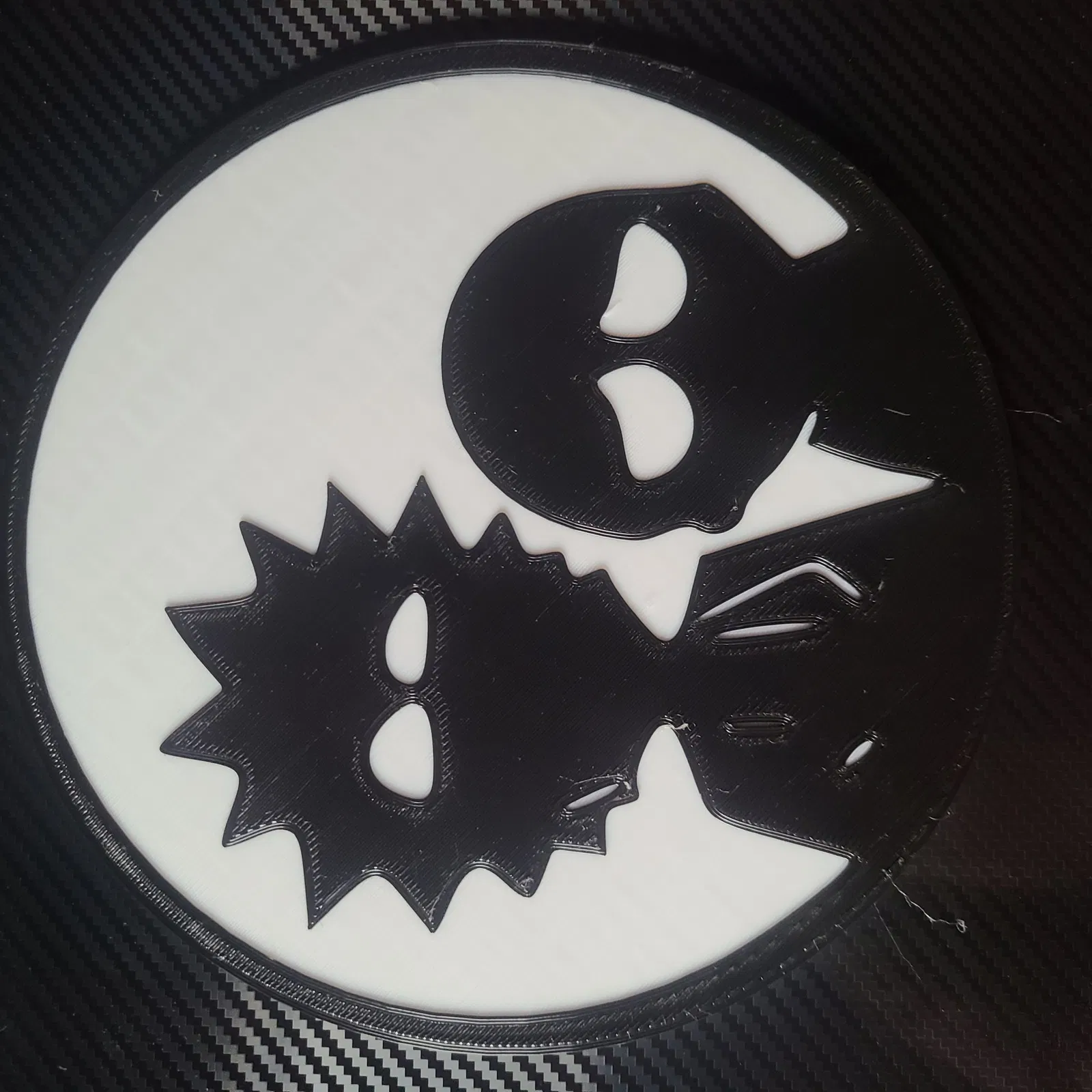 In hình in logo bóng râm của Rick và Morty. Logo in nổi với một sự thay đổi màu sắc. Được in trên một sv06 với đầu vòi .6 và lớp .25.
