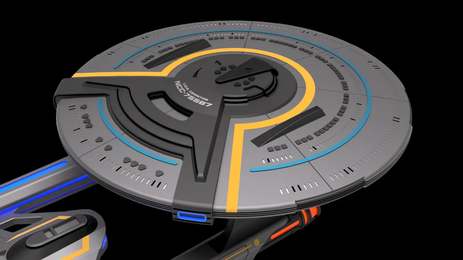 Tôi đã cố gắng thu nhỏ nó xuống tỉ lệ 1:1400 nhưng tôi đã làm việc dựa trên chiều dài cũ khoảng 530m. Thay vào đó, chiều dài mới là 794m, điều này khiến mô hình này có tỉ lệ gần với 1:2080. Chiều dài xây dựng là 382mm (~15in) nên nó vẫn khá lớn. Đĩa bay rộng khoảng 200mm.
