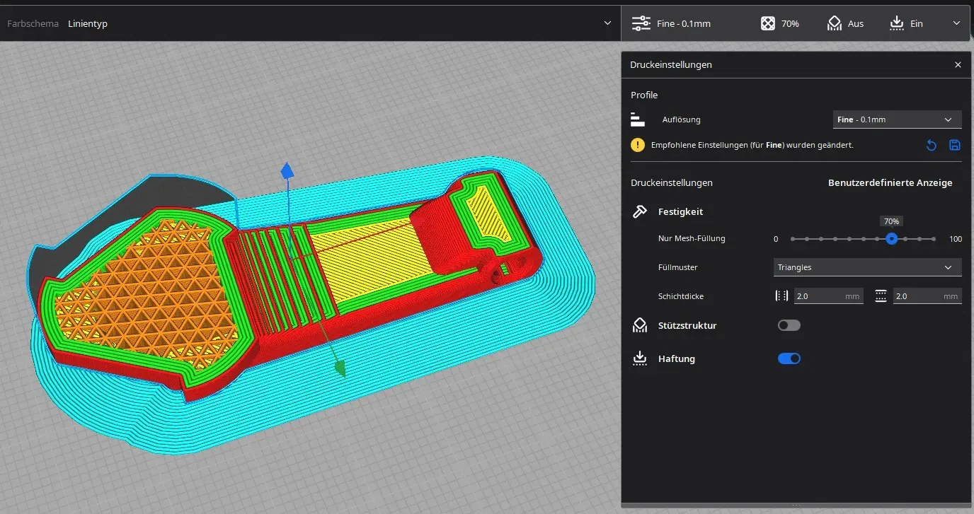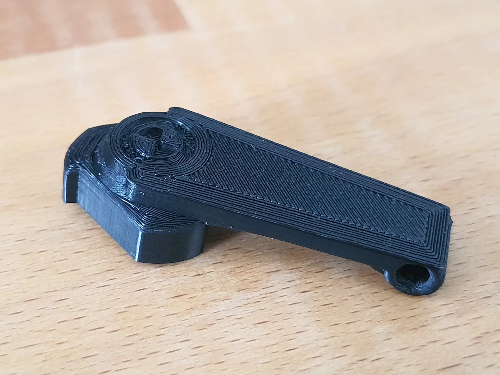 Sau hai ba lần in thử nghiệm, tôi đã có một phiên bản phù hợp. Chìa khóa có thể có một chút nhiều khoảng trống hơn so với bản gốc, nhưng chức năng thì vẫn đảm bảo. Khi in, tốt nhất là tăng độ dày của tường.