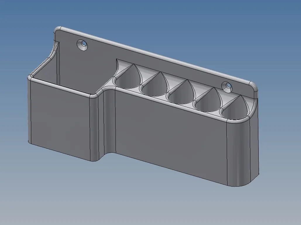 Một giá để bút xóa khô đơn giản có thể chứa 5 bút và một cục tẩy. Mục đích là để gắn lên tường. Tôi sử dụng PLA và độ đầy ánh sáng.