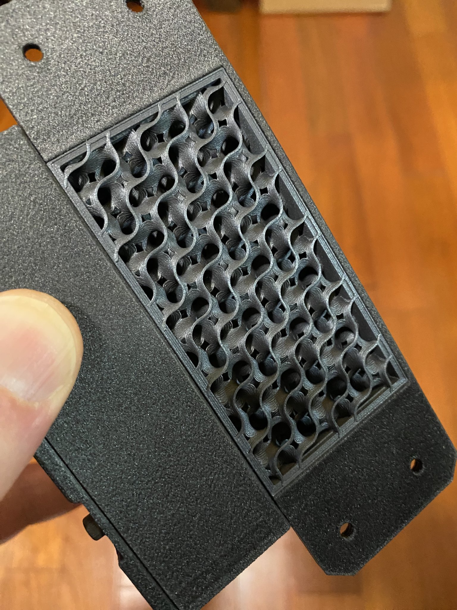 - Đã sửa lỗ gắn quạt kệ cho các chèn nhiệt M3 (3.5mm → 4mm). 1/4/23 - Sau khi thử lắp SHELF_GRILL, tôi nhận thấy nó hơi khó để kéo ra. Vì vậy, tôi quyết định thêm một mép và các tab để nó ngồi trên đỉnh kệ, không phải trong đó.
