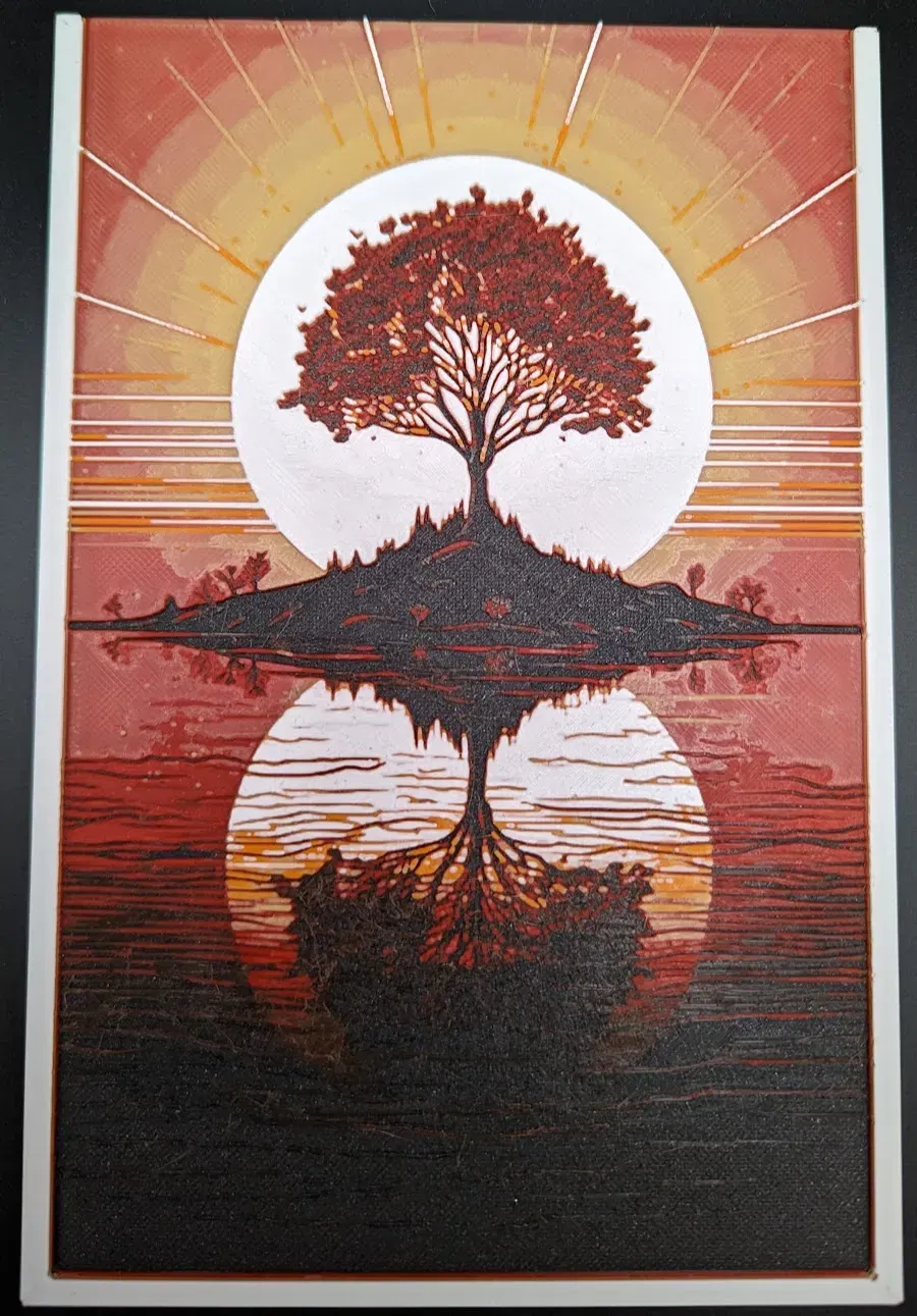 Bức tranh dây tóc của Hueforge về một hoàng hôn đẹp trên một hòn đảo