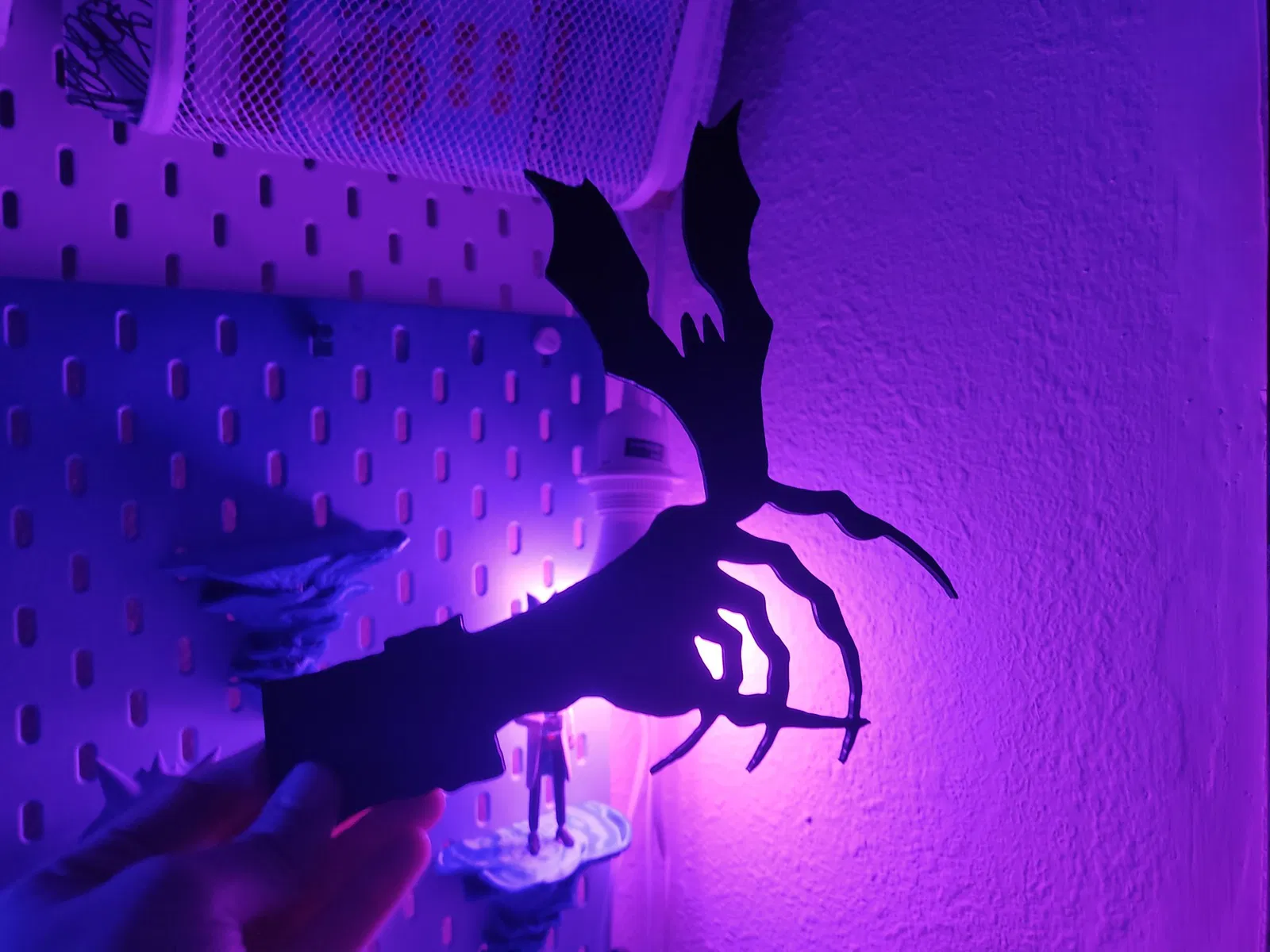 Một hình bóng 2D để trang trí bất kỳ bề mặt phẳng nào bạn muốn. Tôi đã đặt chúng vào kính cửa sổ bằng keo dán tường. Lần này là một bàn tay ma cà rồng rùng rợn với một con dơi.