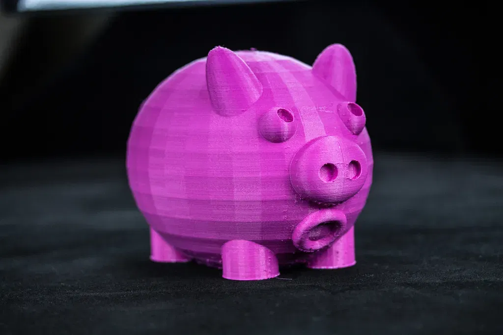 PiggyThin.stl đã sẵn sàng để in 3D. Orville màu hồng được hiển thị đã được in bằng PLA với chiều cao lớp 0.2mm và có hỗ trợ.