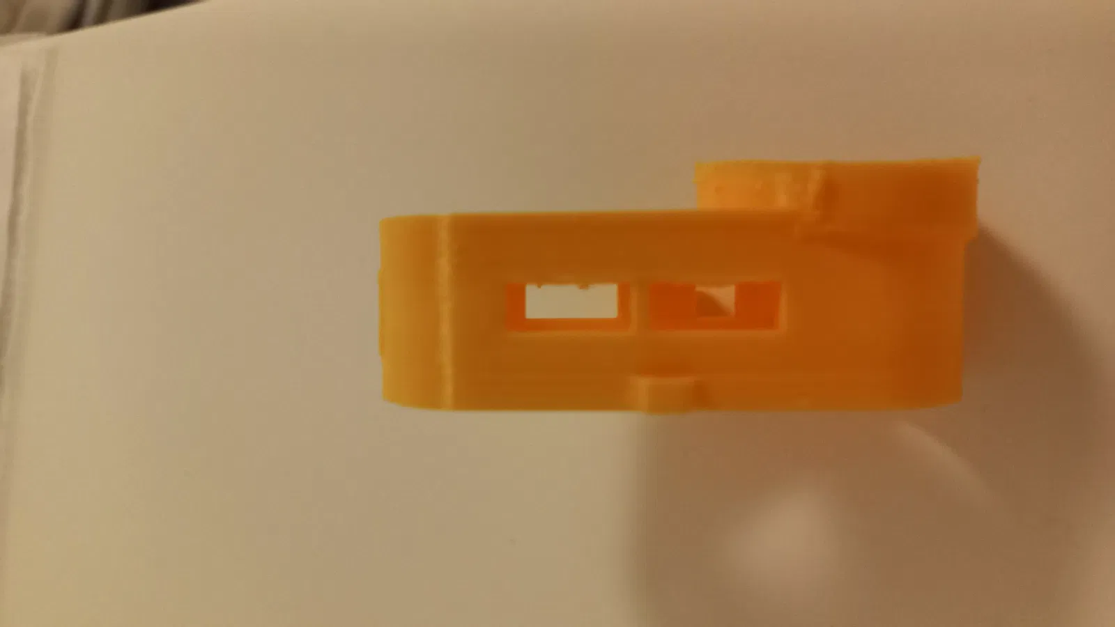 Tôi khuyên bạn nên in giá đỡ nằm ngang từ phía mà camera được chèn vào giá đỡ, sử dụng các hỗ trợ (chúng có thể được tạo tự động với những điều chỉnh nhỏ từ phía chúng ta), in ở tốc độ giảm và lấp đầy bản in với 100%, để vỏ camera chắc chắn hơn, bền hơn. Vì vậy, tôi đã in một bản sao của các bức ảnh.