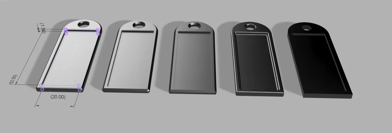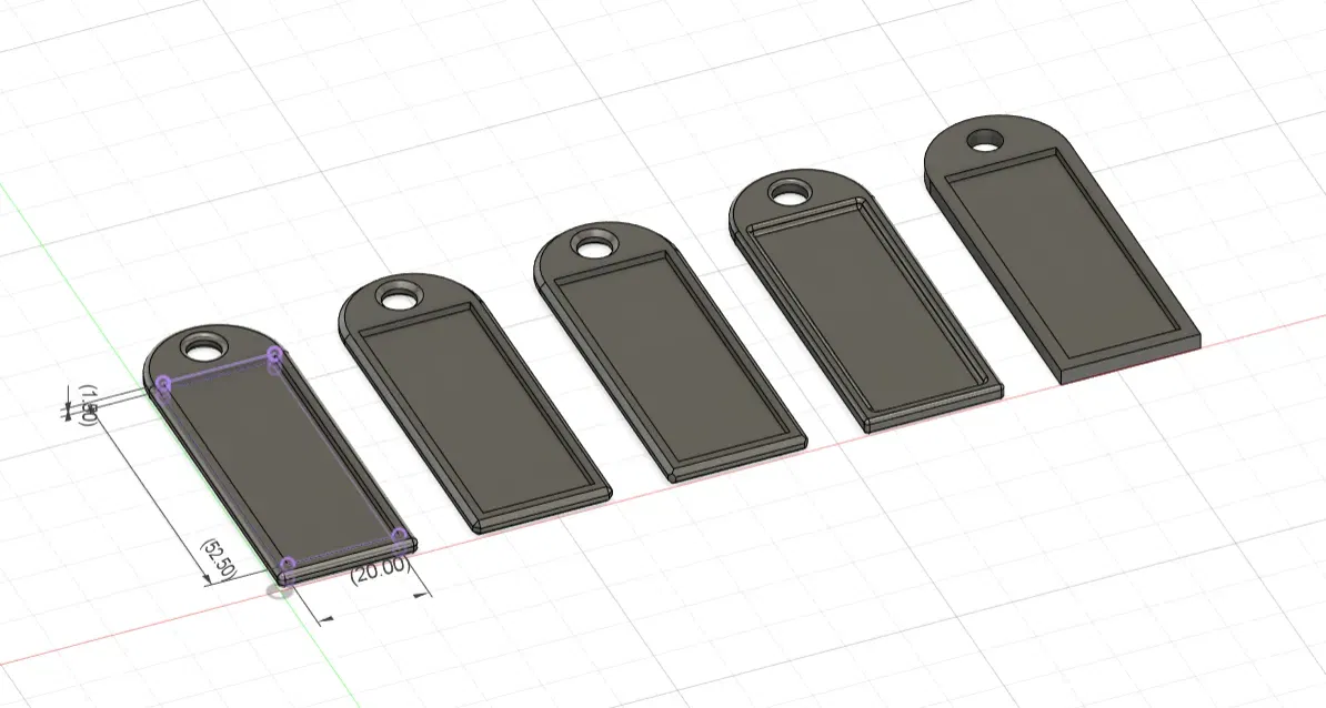 Năm móc khóa thông tin khác nhau với không gian cho các kích thước đã chỉ định để chèn một mảnh giấy hoặc một tờ in.