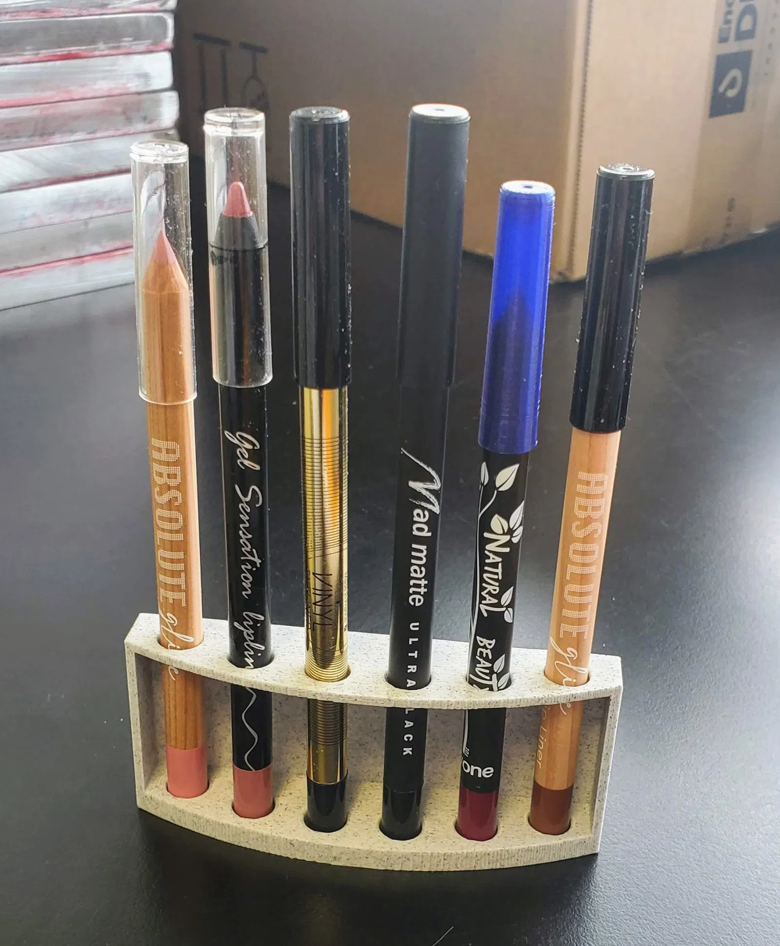 Một giá đỡ đơn giản cho việc trưng bày bút mỹ phẩm Có thể được gắn hai lần vào tường hoặc vào một giá đỡ thứ hai.