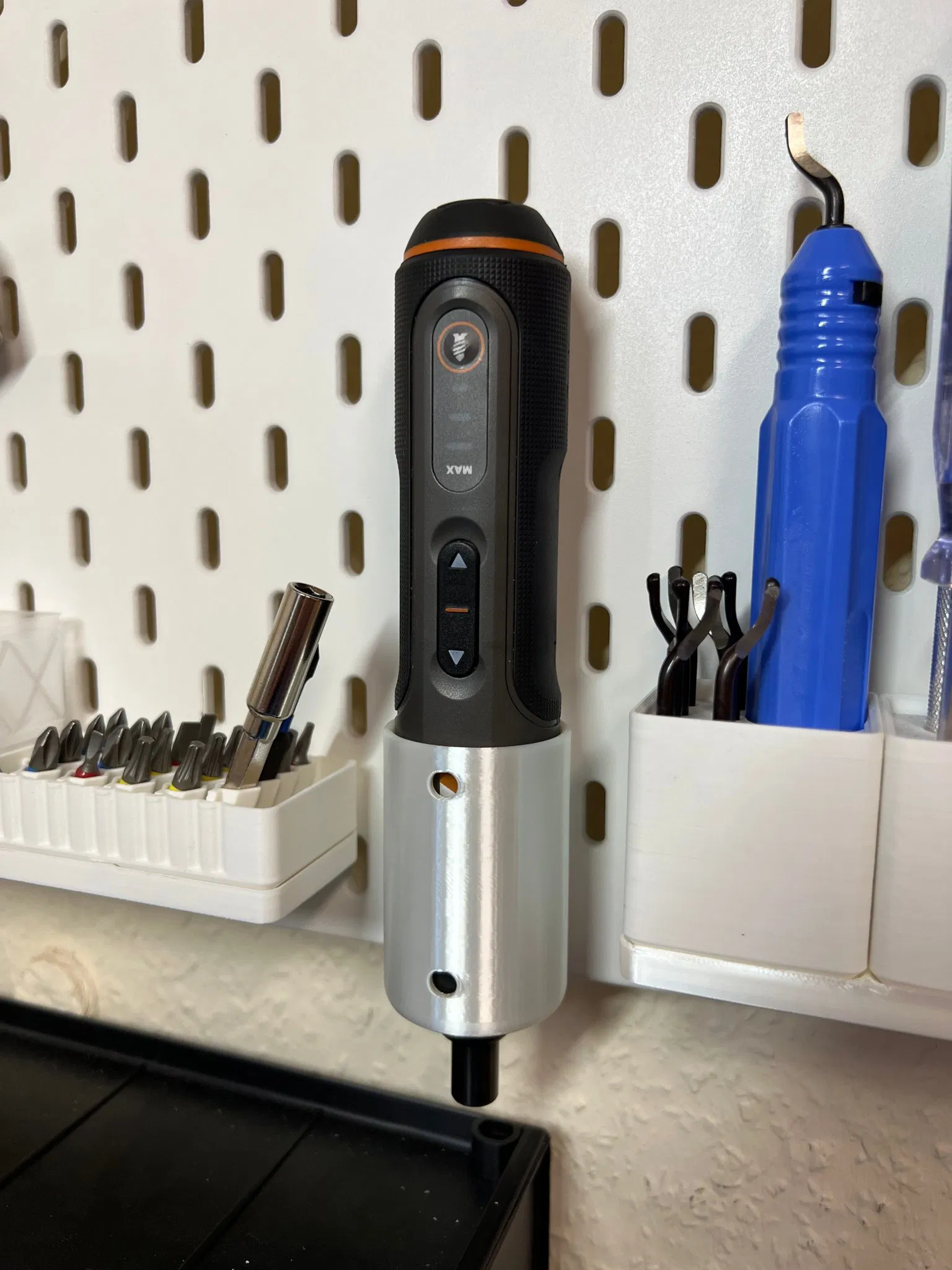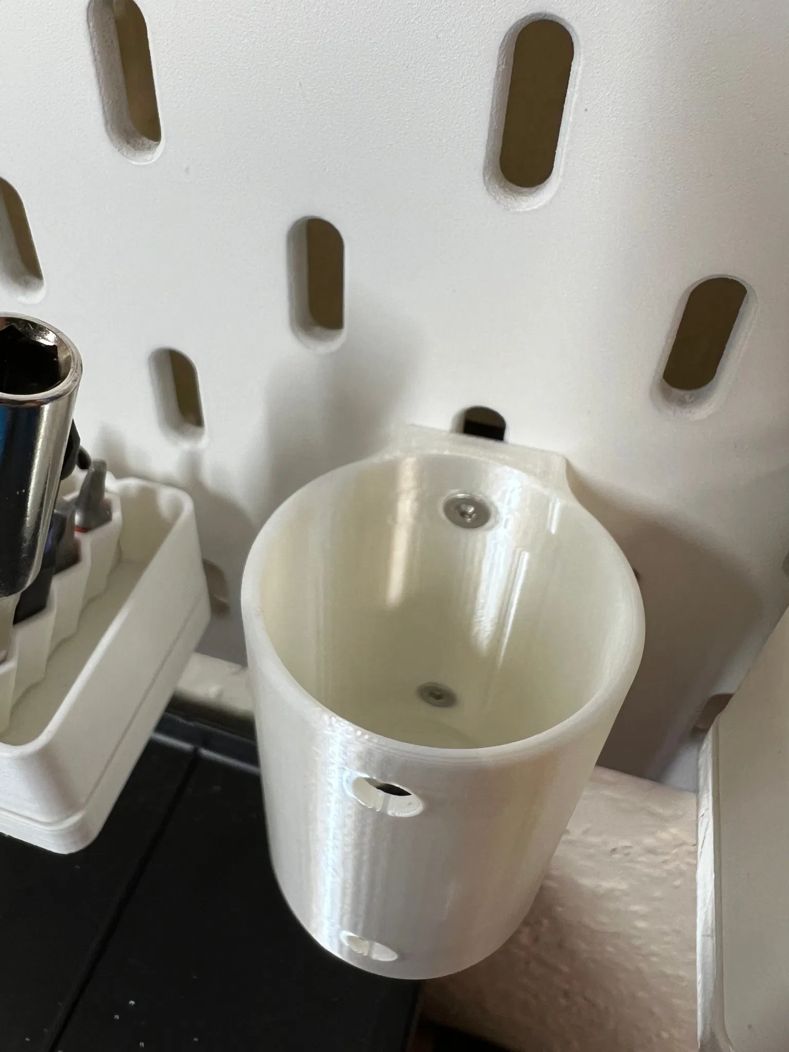 Người giữ Worx WX240 để gắn vào Skadis hoặc một bức tường. Sử dụng Skadis T-Nuts