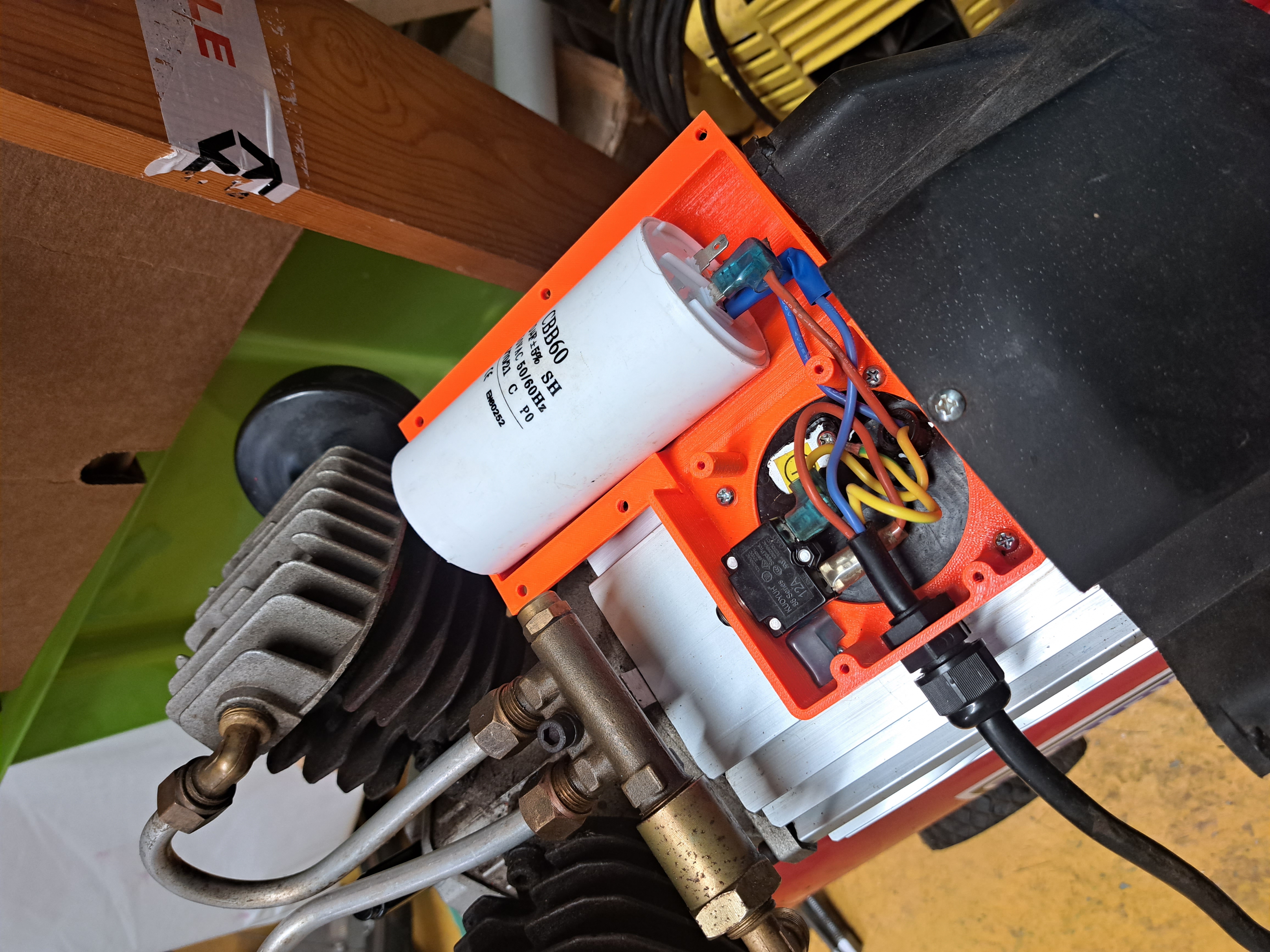 Cái vỏ tụ điện thay thế cho máy nén khí Sealey. Tui tự in để thay thế vỏ zin bị hư, giúp gắn vừa tụ điện mới có kích thước lớn hơn với giá rẻ hơn nhiều so với mua đồ hãng. In bằng PETG, 0.2mm layer height.