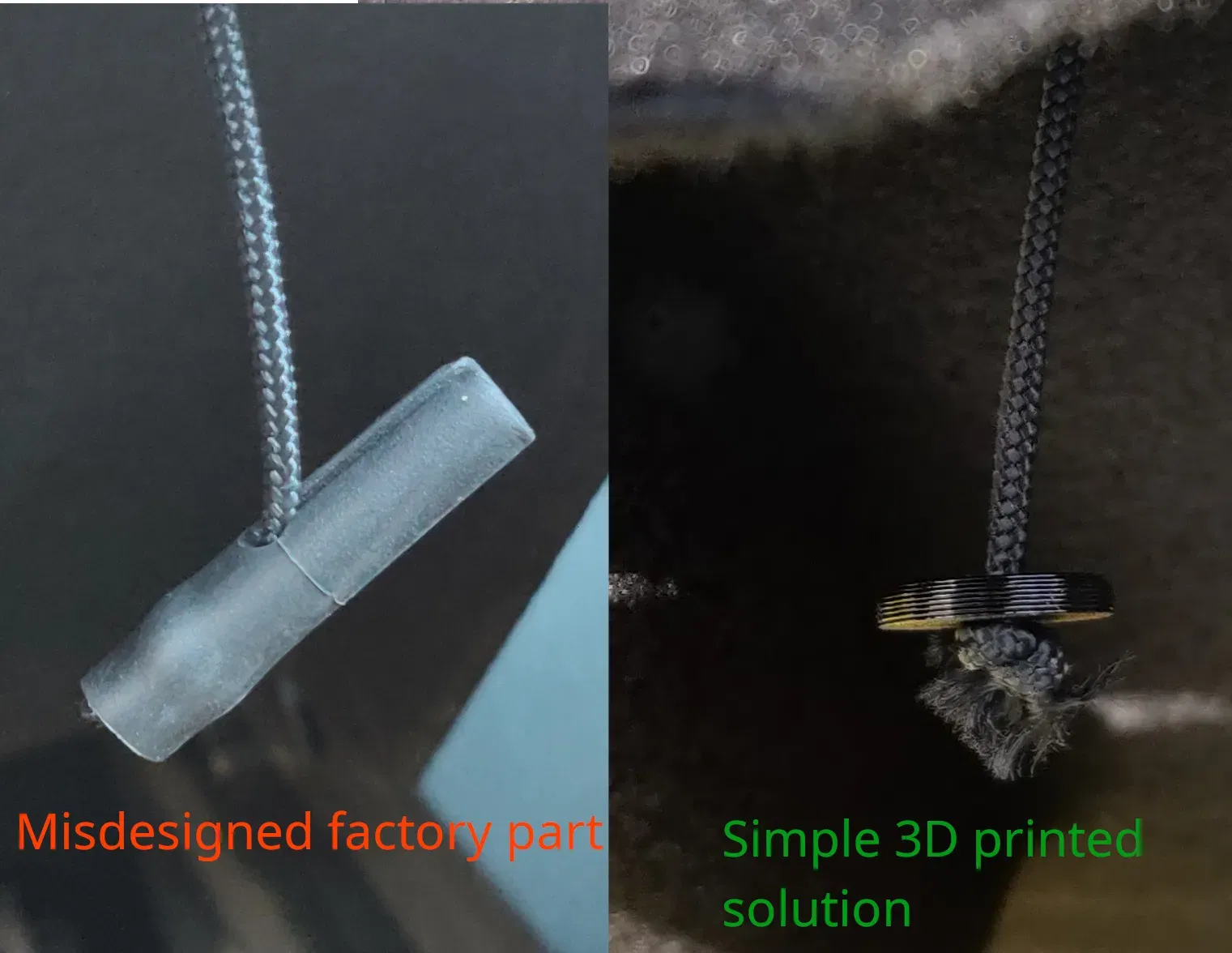 Thanh cao su nguyên bản không được làm rất tốt và dễ bị rơi ra, nó cơ bản là một thanh cao su hình chữ thập mà bạn trượt qua một nút ở cuối dây. Việc tái tạo điều này không phải là một ý tưởng hay. Thay vào đó, đây là một vòng đệm cứng thay thế. Đây là thiết kế mà Dacia nên đã sử dụng.