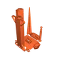 Cũng có một phụ kiện đáy (màu cam) cái này lắp vào đáy của thân, và được giữ lại bằng một que tăm như một chốt giữ, nó có các lỗ cho phép bạn sử dụng nhiều thứ khác nhau để cắm xuống đất, 2x xiên BBQ 3mm, 2x3x3.8 xiên hoặc 6mm dowel nhưng bạn có lẽ tốt hơn là nên in cái chốt đất (màu tím) và sử dụng cái đó. Bất cứ thứ gì bạn sử dụng sẽ cần được dán vào phụ kiện đáy.