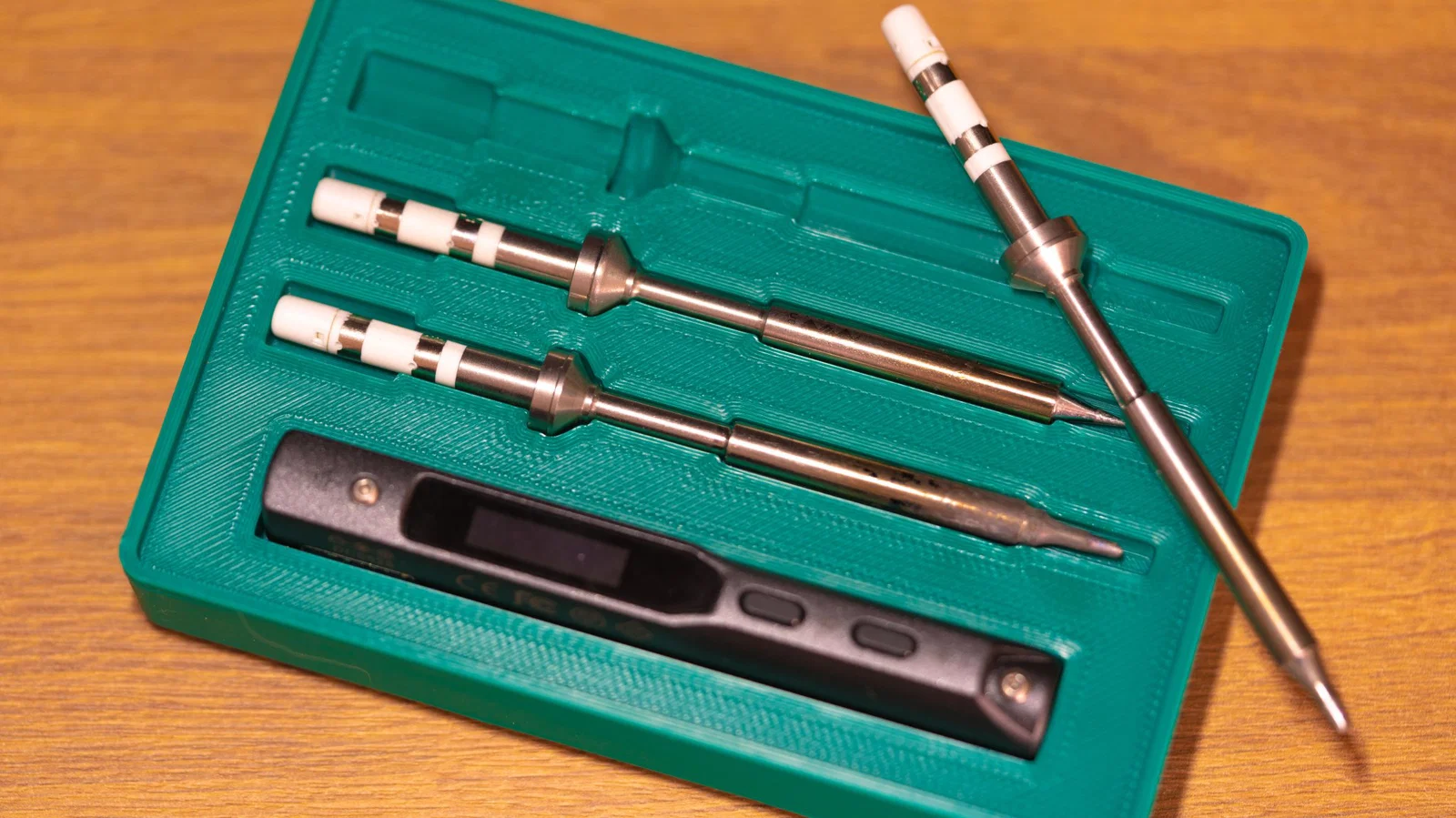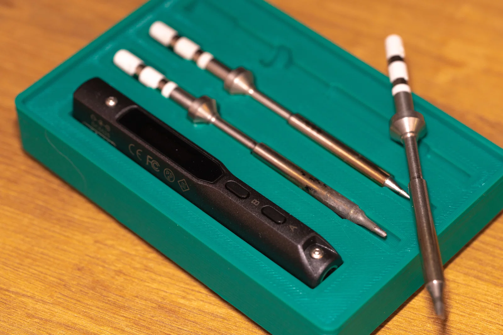 Người giữ này sử dụng các khe 3 x 2 lưới và giữ sắt hàn TS100 cùng với 3 đầu.