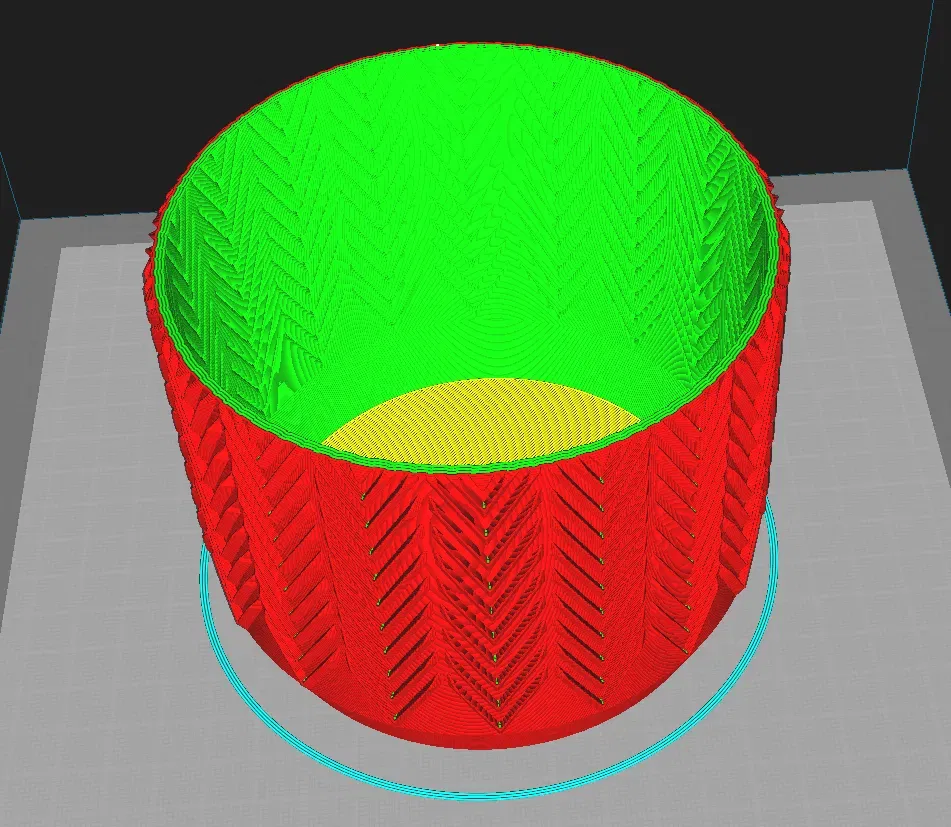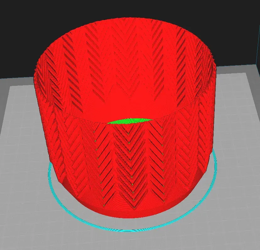 Tôi đã chỉnh sửa mô hình để nó trở thành một khối lớn. Nó cho phép in ở chế độ bình. Không chỉ vậy, nó cho phép bạn làm cho các bức tường dày như bạn muốn - bạn có thể in với 0 độ đầy, số lượng bức tường mong muốn và 0 lớp trên cùng. Các ví dụ về cắt là trong những bức tranh ở trên.
