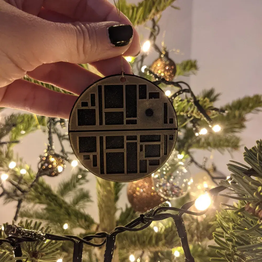 Đó không phải là một mặt trăng! Một phiên bản Deathstar phẳng có thể được sử dụng làm vật trang trí cây thông Noel, bông tai, khóa, bạn đặt tên cho nó.
