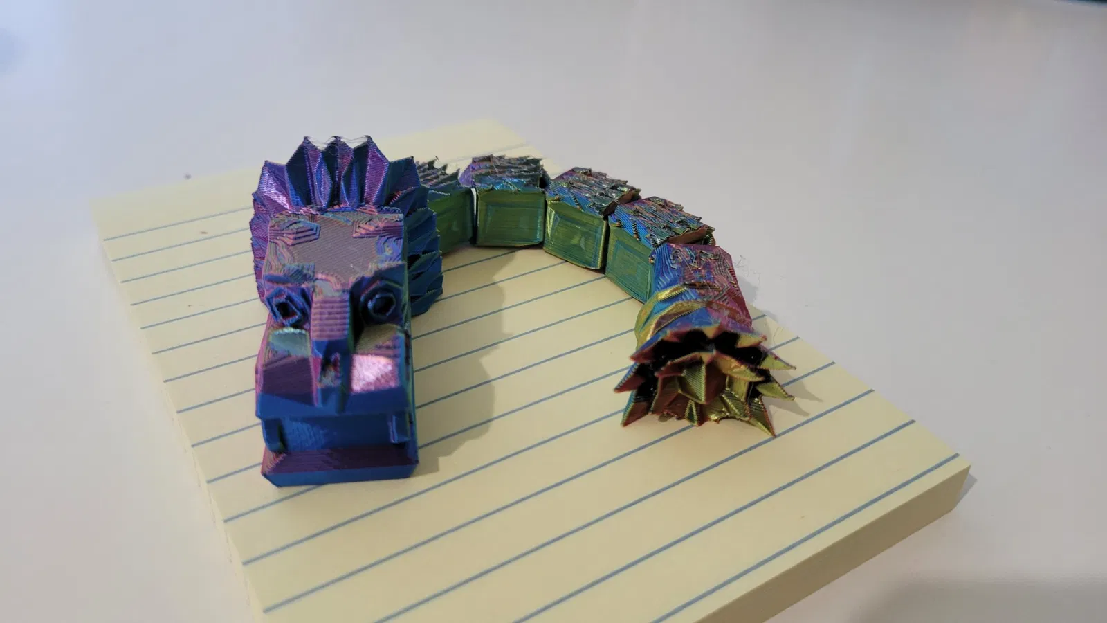 Tôi đã tạo một phiên bản low poly của Quetzalcoatl có khớp. Điều này được thực hiện với chức năng đơn giản hóa tích hợp trong eSlicer 2.6.0. Sau đó, tôi đã thực hiện các điều chỉnh và tinh chỉnh để tăng tính khả thi khi in. Bao gồm các liên kết cá nhân cho các chiều dài tùy chỉnh. Tôi khá hài lòng với cách mà điều này đã ra đời. Nếu bạn cũng thích điều này, bạn nên kiểm tra phiên bản có cánh tại đây.