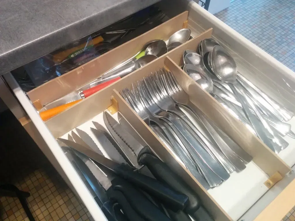 Một cách đơn giản để sắp xếp dao muỗng của bạn. Chỉ cần chuẩn bị MDF dày 3mm cho các ngăn cách.