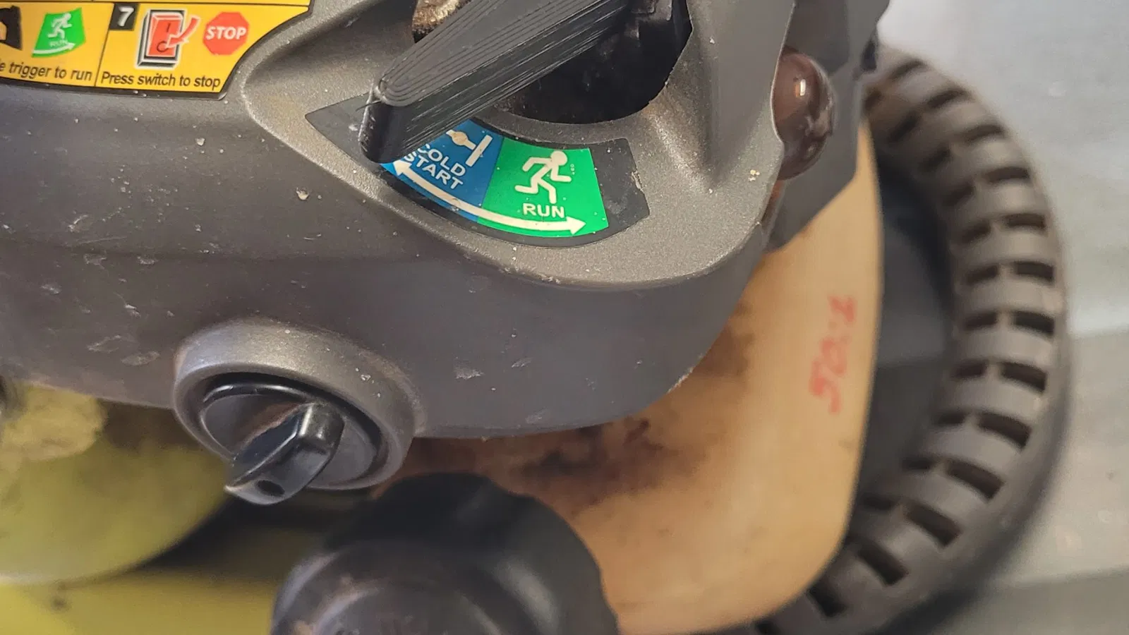Cần điều chỉnh cần gạt chế độ choke cho máy thổi lá Ryobi