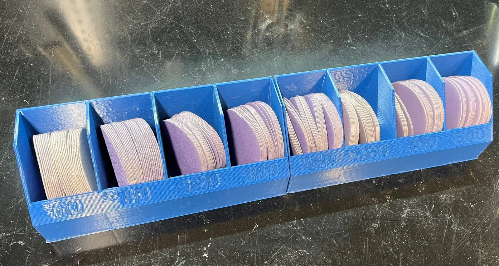 3" Bộ tổ chức đĩa chà nhám (60/80/120/180/240/320/400/600) Các mẫu bao gồm để thay đổi độ nhám. Được tách thành hai phần để dễ in.