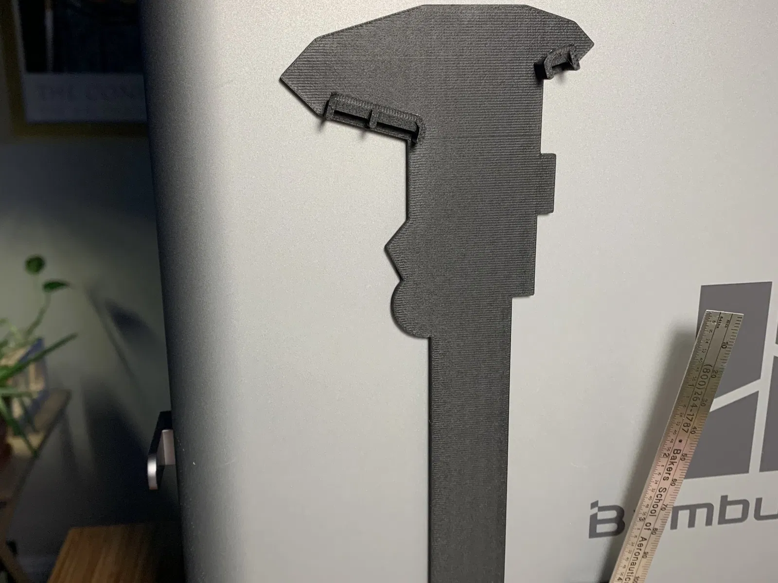 Kích thước và hình dạng của mô hình này được xác định bởi việc không muốn làm xước X1C của tôi khi lấy hoặc cất giữ thước kẹp thường dùng, vì tôi đã dán nó vào bên hông máy in bằng một vài dải gắn 3M (sẽ dễ dàng để remix điều này với các lỗ vít nữa). Có các chốt ở dưới cùng để giữ công cụ ở giữa mà không bị lệch khỏi bên cạnh giá đỡ, làm cho mọi thứ khít lại ngay cả khi tôi không treo thước kẹp vuông góc trên các móc.