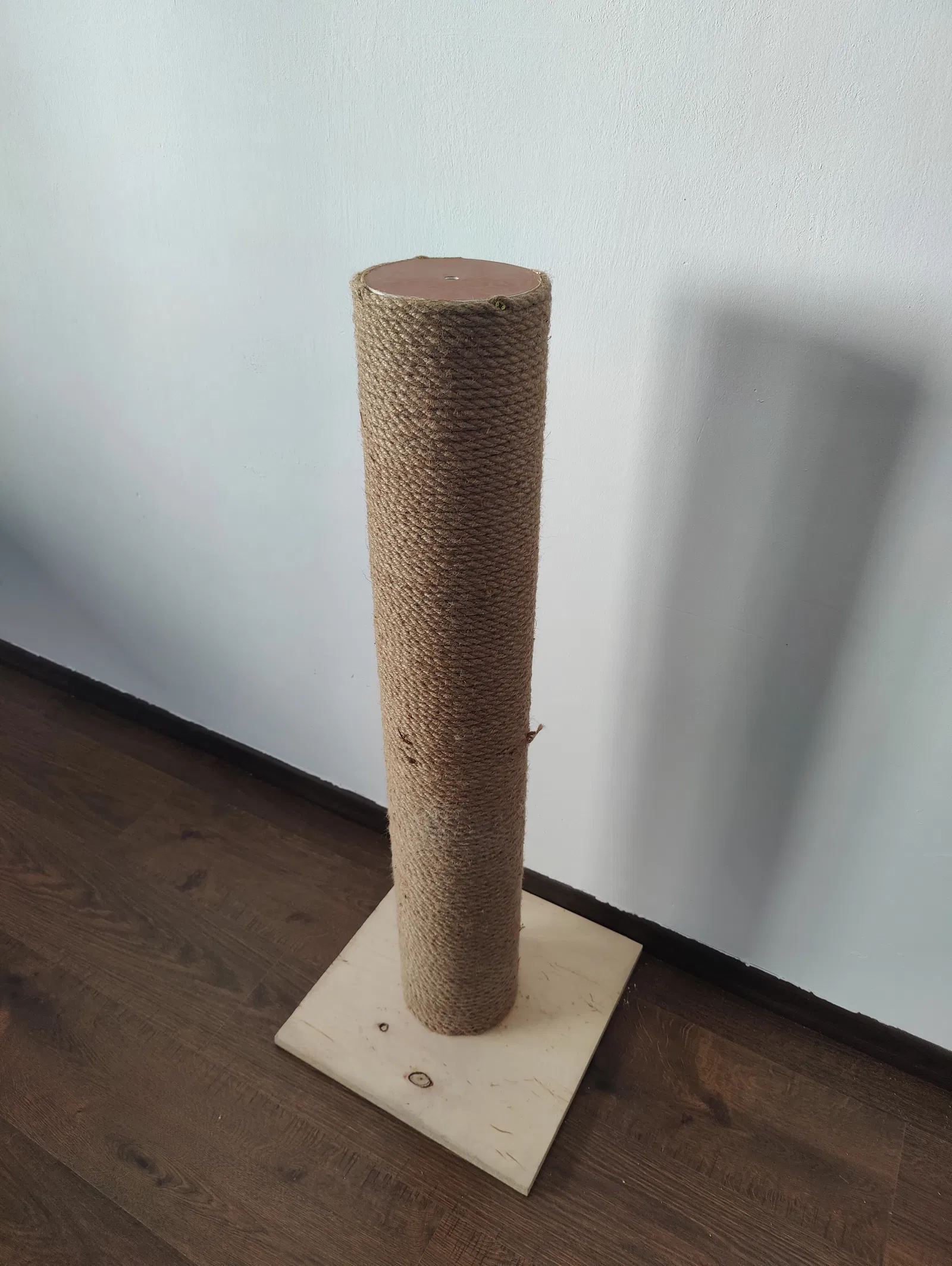 Bộ kit làm trụ cào móng cho mèo, sử dụng ống PVC 50cm đường kính 15cm, dây thừng gai 8mm, kết nối bằng bu lông M12, có thêm bậc thang cho mèo nhảy.