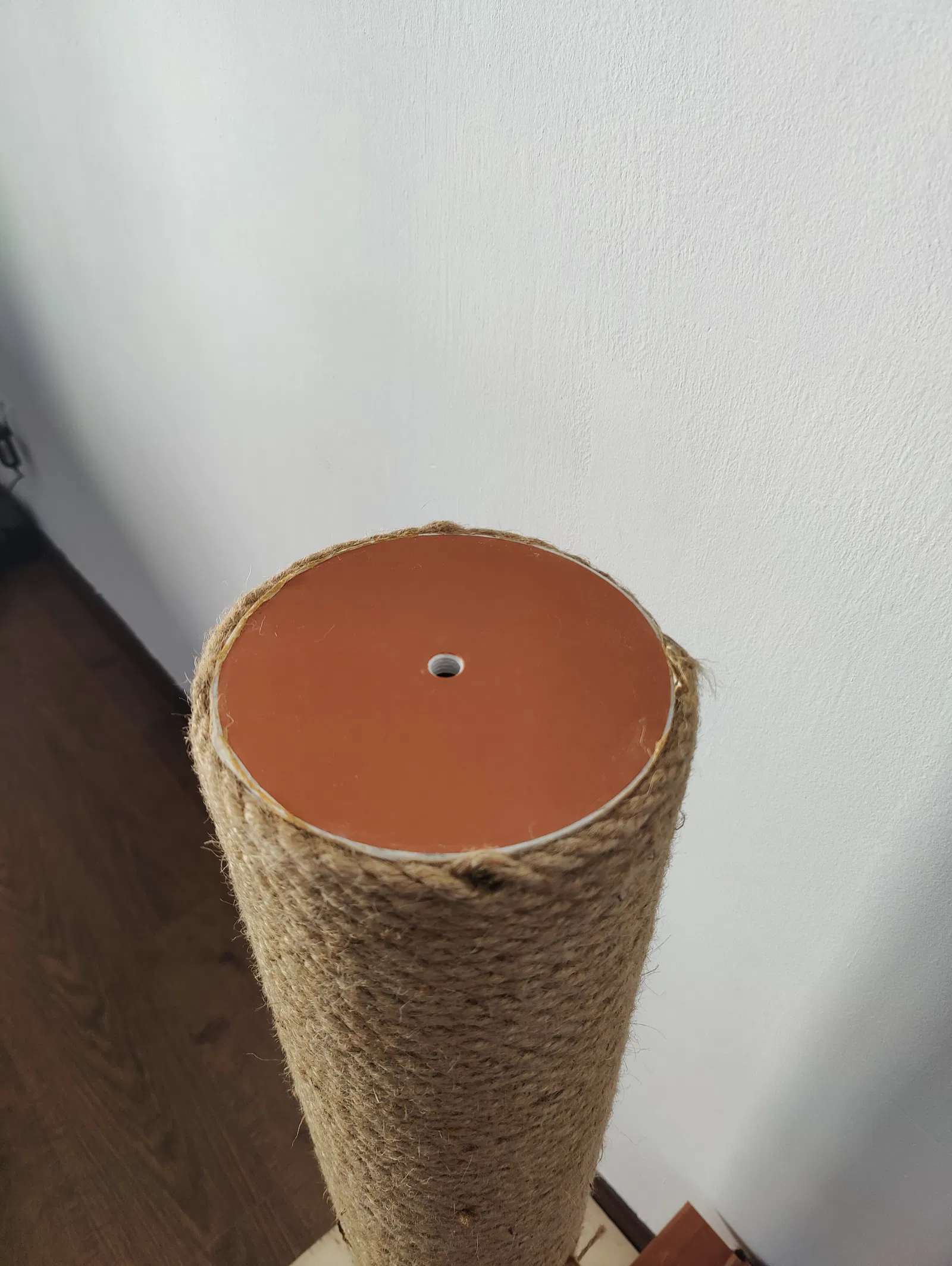 Tui muốn tự làm cái trụ cào móng cho mèo nên tui đã dùng ống PVC dài 50 cm với đường kính trong 15 cm, quấn băng keo hai mặt rồi dán dây thừng gai loại 8 mm. Tui cần nối mấy cái ống này lại với nhau nên tui đã làm hệ thống kết nối ống có thể nối với nhau bằng bu lông M12. Ngoài ra, tui còn làm thêm bậc thang để gắn vào giữa các mô-đun này, cho bé mèo có thể nhảy lên tự do