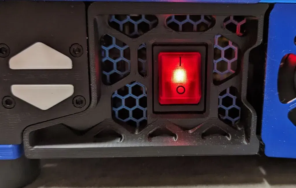 Công tắc rocker nguồn được di chuyển sang bên trái/phải của vỏ trước của Voron 2.4
