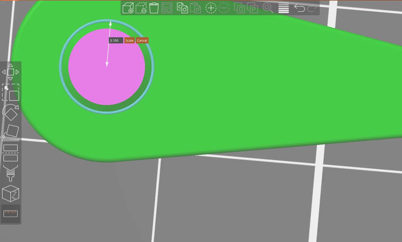 Về việc in, vui lòng đặt các bộ phận sao cho các mặt phẳng lớn hướng xuống khay in để bạn không cần sử dụng vật liệu hỗ trợ. Tôi đã tích hợp vào mô hình một khoảng dung sai tổng thể 0.2 mm giữa tất cả các bề mặt tiếp xúc, vì vậy một loạt các sợi nhựa sẽ phù hợp mà không gặp quá nhiều khó khăn. Trường hợp của tôi với PETG, tôi thấy mặt trên và mặt dưới của núm xoay khớp với nhau một cách đẹp mắt mà không cần keo, chỉ cần khớp bấm là được, tuy nhiên kim chỉ và đế hơi lỏng. Để kim chỉ có độ bám tốt hơn, tôi đã sử dụng Prusa Slicer (phiên bản 2.6 tại thời điểm viết bài) để điều chỉnh điểm trục xoay thành 3.2 mm, giúp khớp tốt hơn (nó sẽ giữ nguyên vị trí cho đến khi bạn sẵn sàng di chuyển nó).