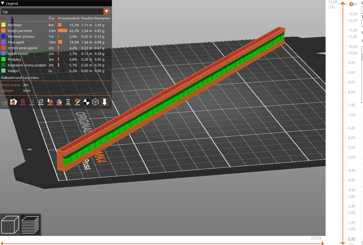 Để in thân của led pásek, cần thiết lập các giá đỡ giữa các bức tường, xem hình ảnh.