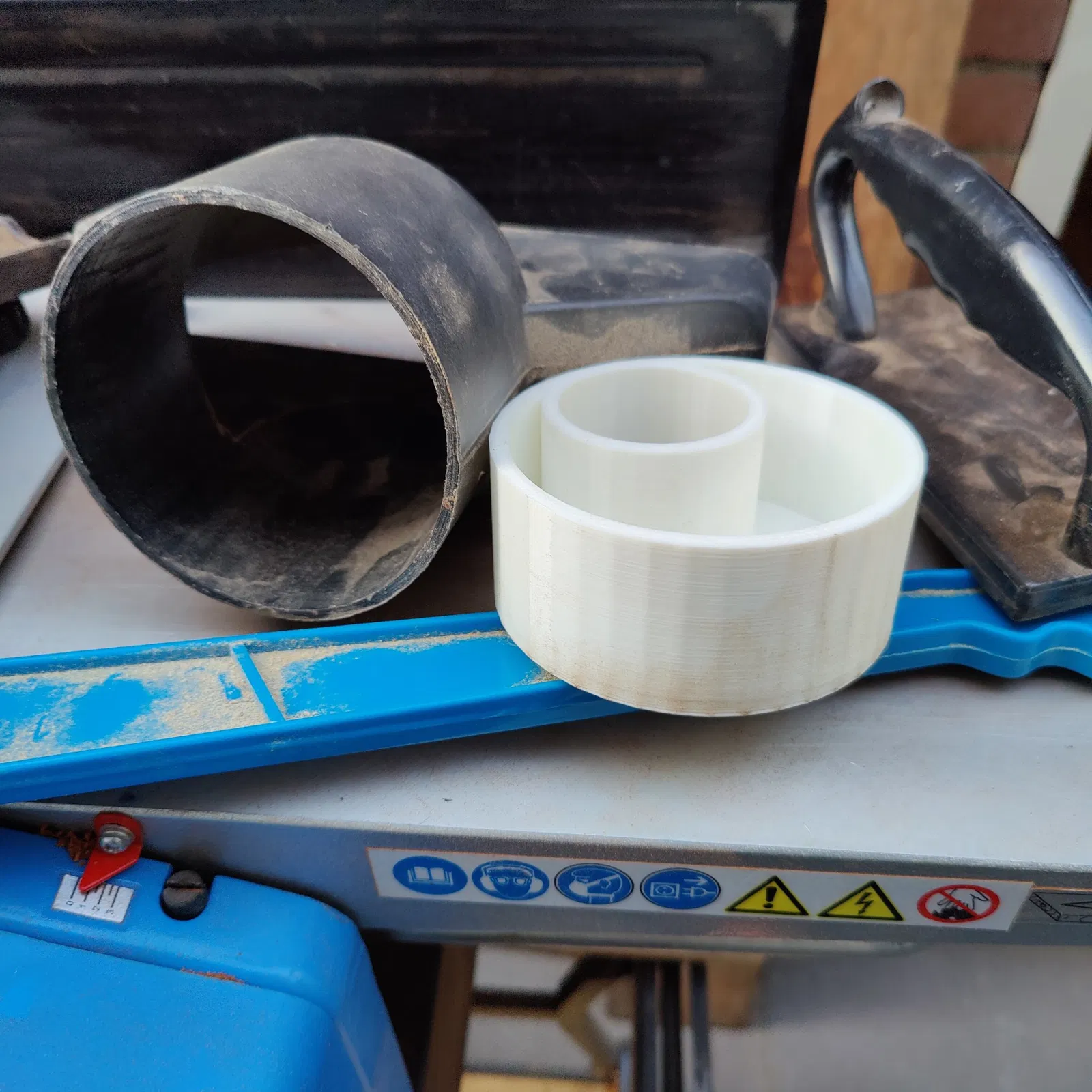 Đây là một ống hút giảm cho máy bào Gude (máy bào sản xuất tại Trung Quốc với nhiều tên gọi khác nhau) và được gắn với nó là một ống hút 45 của máy hút bụi Festool. Hoạt động như một phép màu. Tôi đã ghé thăm một người bạn đã làm mẫu này và tôi đã in nó. Vì vậy, cả hai đều là những người tiêu dùng hạnh phúc :).