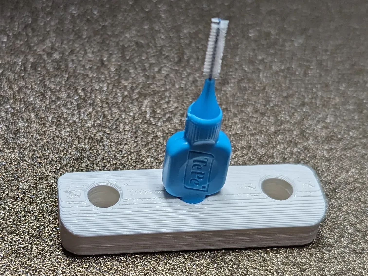 Giá đỡ cho 3 bàn chải kẽ răng TePe. Mô hình FreeCAD là tham số và có thể dễ dàng thay đổi.