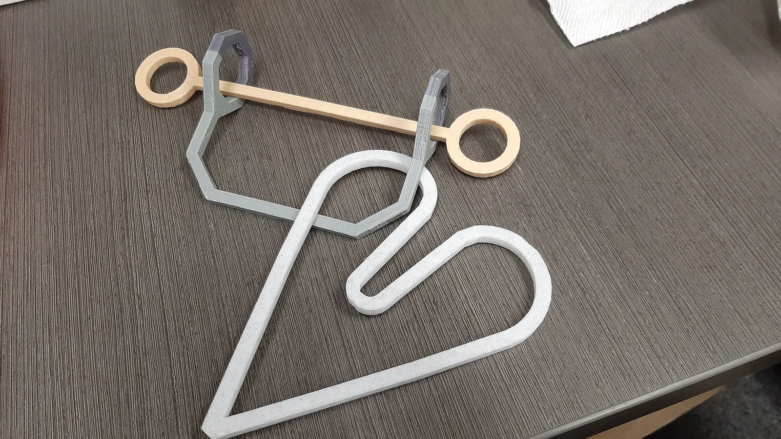 Dựa trên một câu đố mà tôi nhớ đã giải khi còn nhỏ. In thanh trước. Khi in cái vòng, bên dài nên nằm trên đĩa, với các vòng hướng lên trên. Tạm dừng in khi các vòng vẫn còn mở, và đặt thanh đi qua cả hai vòng. Tôi gợi ý nên in với một viền.