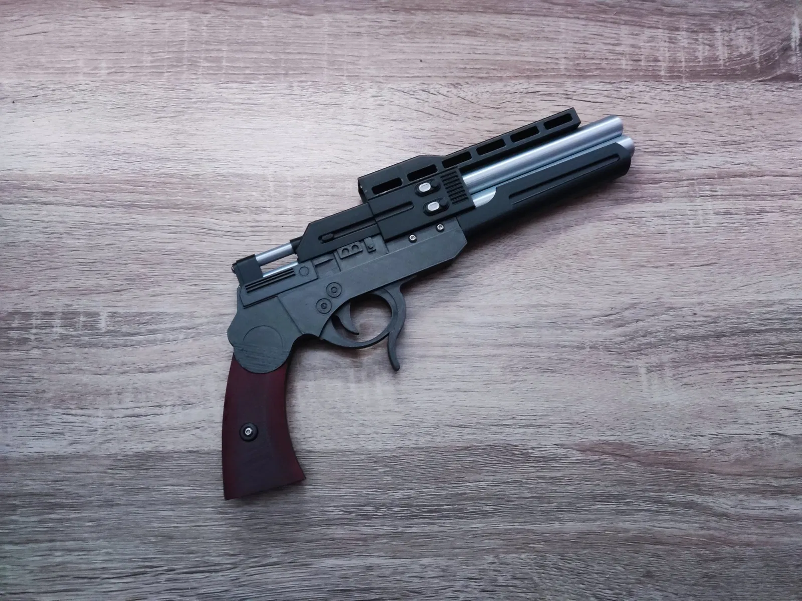 Ở đây tôi có mô hình của khẩu blaster Quickdraw được thấy trong trò chơi Jedi Survivor.