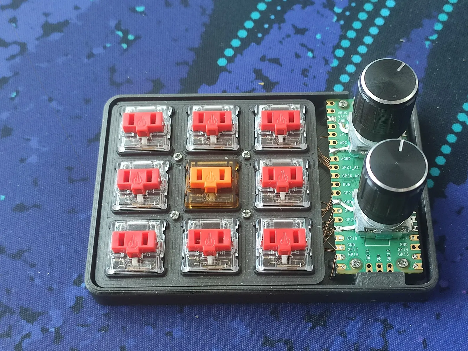 Một bàn phím macro đơn giản sử dụng công tắc Kailh low profile choc, hai bộ mã hóa xoay (tùy chọn) và một pi pico. Một ví dụ về firmware KMK có thể được tìm thấy trên Github.