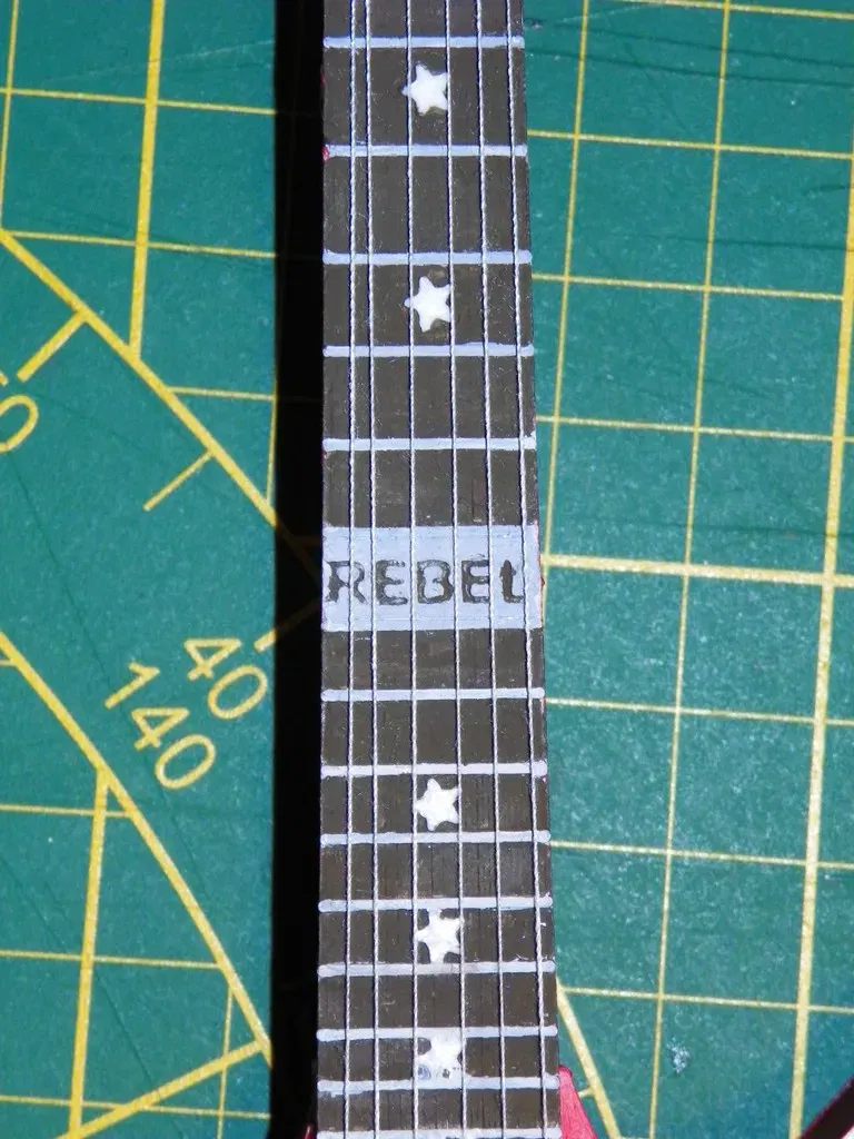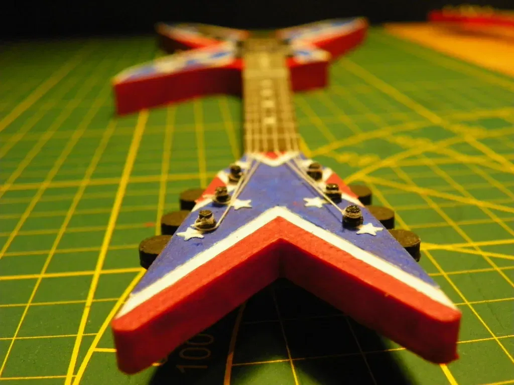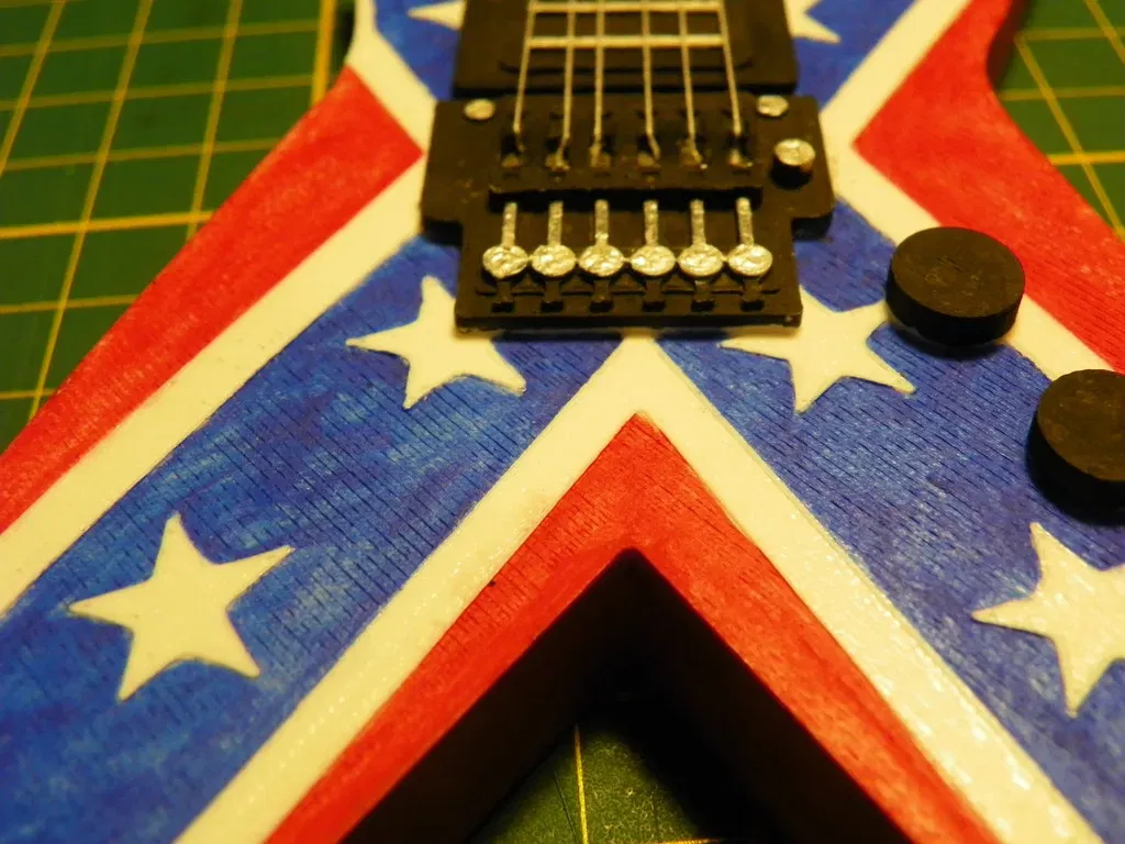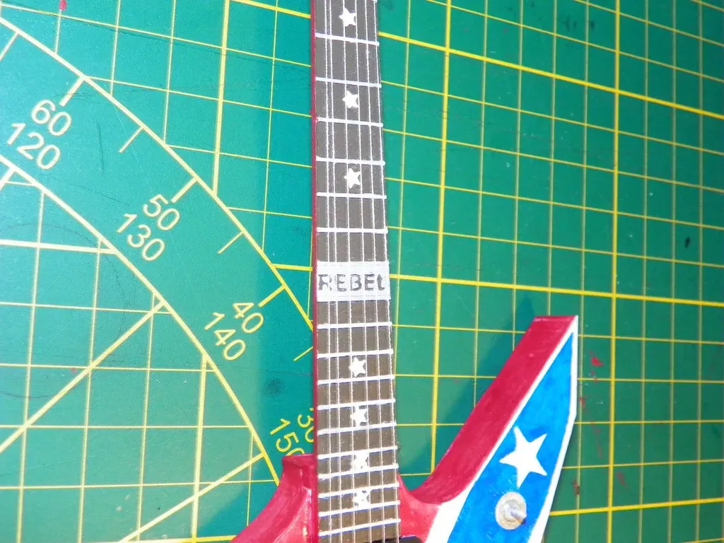 đây là phiên bản thứ hai của cây đàn guitar Dean của tôi. Nó giống như Dime từ địa ngục, nhưng tôi đã làm theo cách khác. Có rất nhiều cạnh nhô lên và chi tiết để dễ dàng sơn.